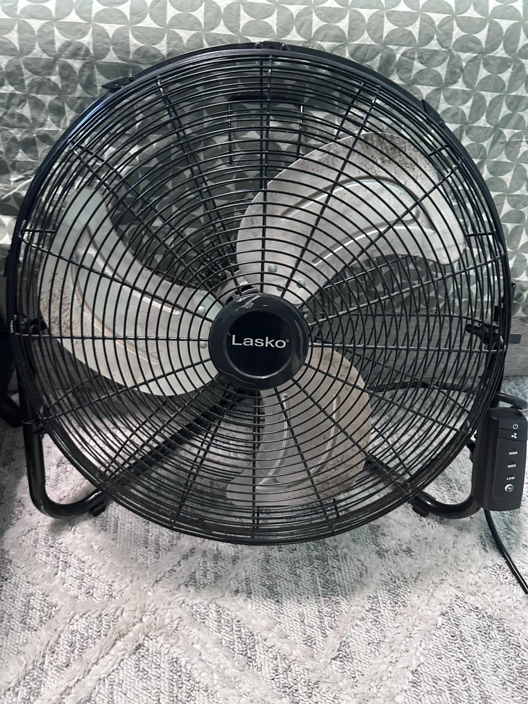 116Selling a Lasko floor fan/air circulator in black. It has settings for high, medium, and low. Great for keeping cool!