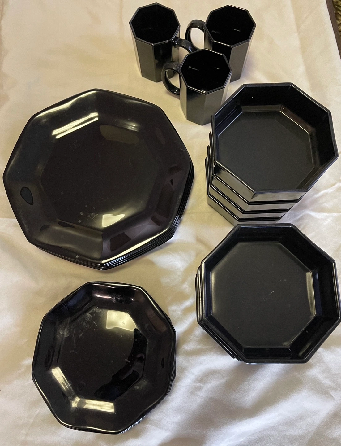 Eight sets of plate, saucer and bowl. Extra three mugs will be included.