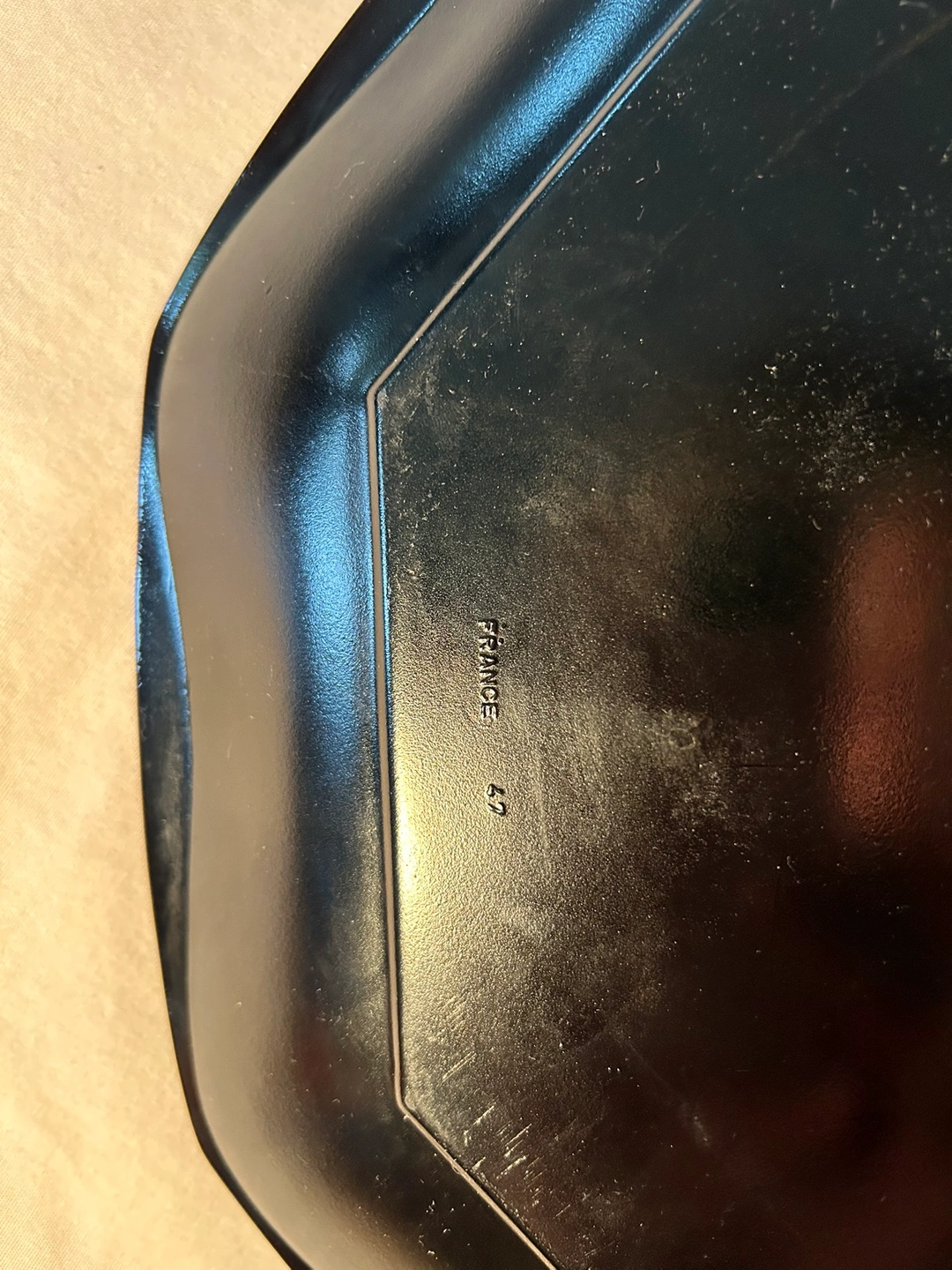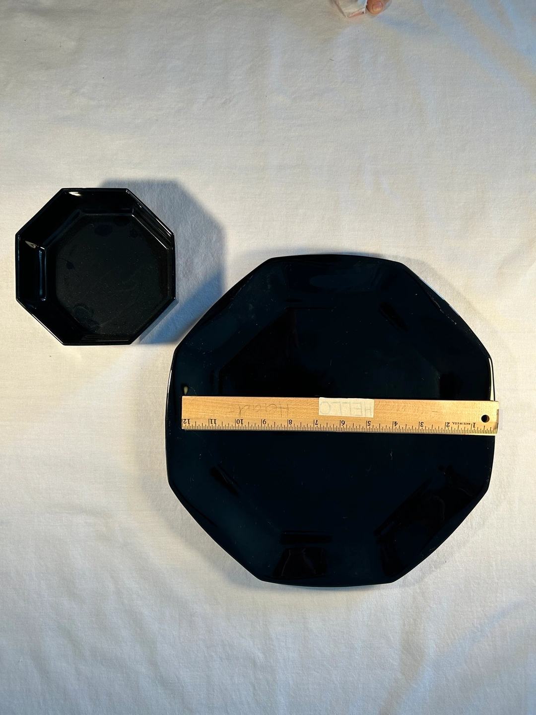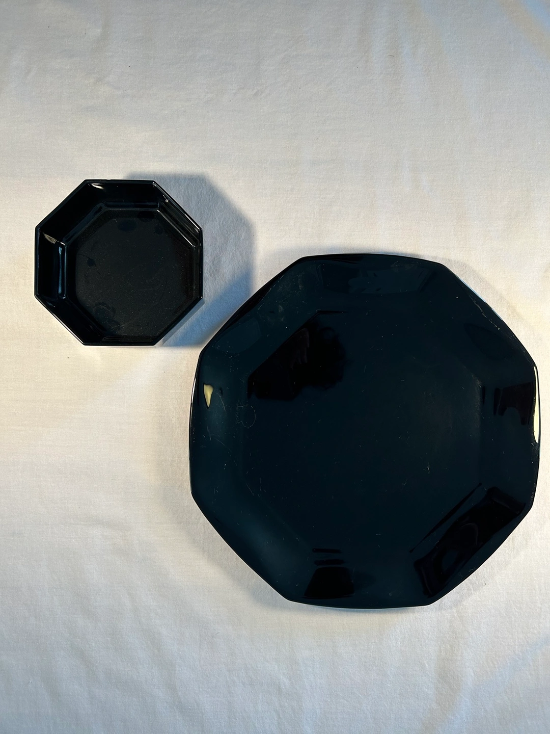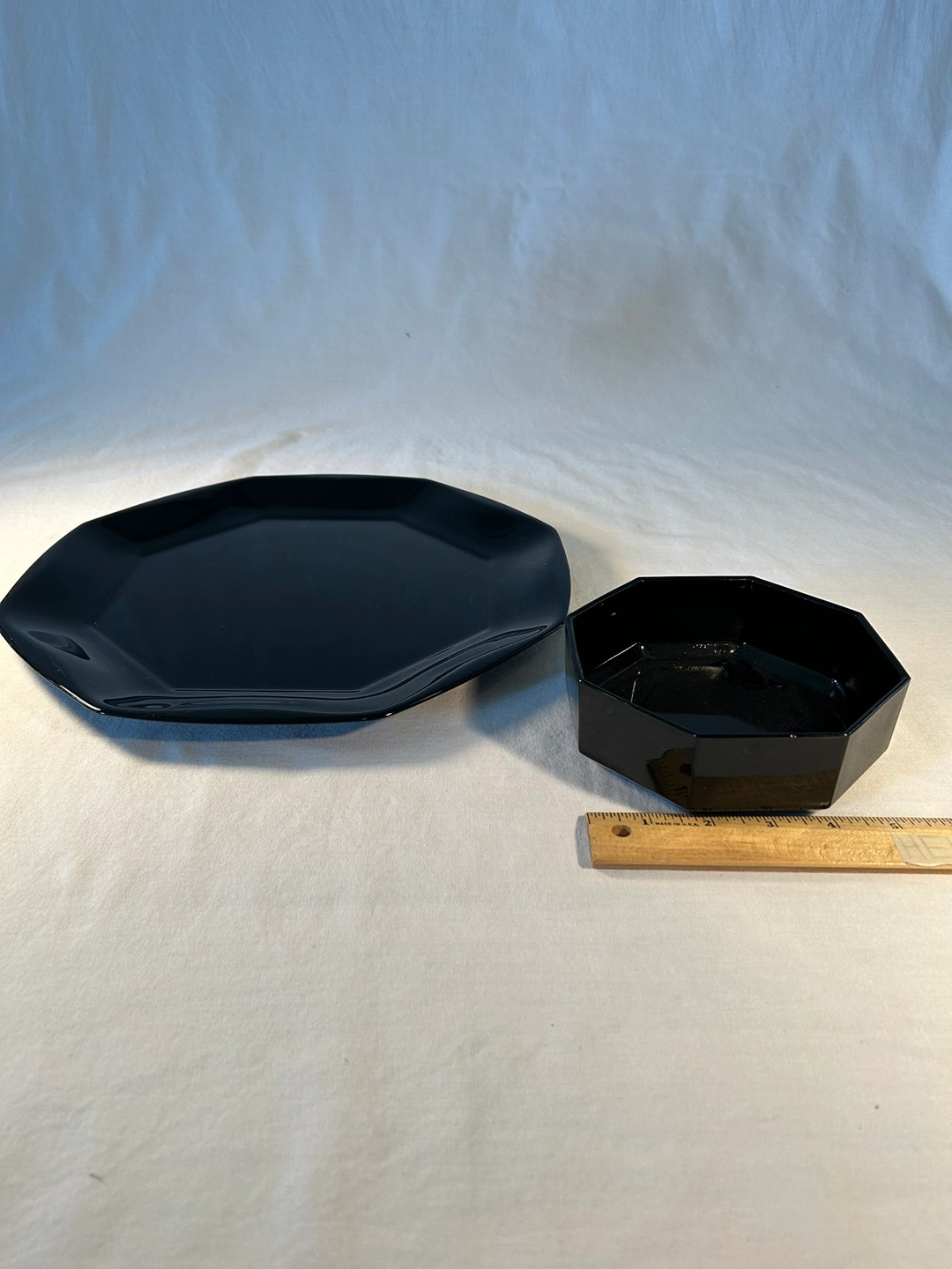Sophisticated black glass, decor/serving plate bowl made in France. Platter 12 1/2”. Bowl 5 1/2”. For your “all things French” party buffet.