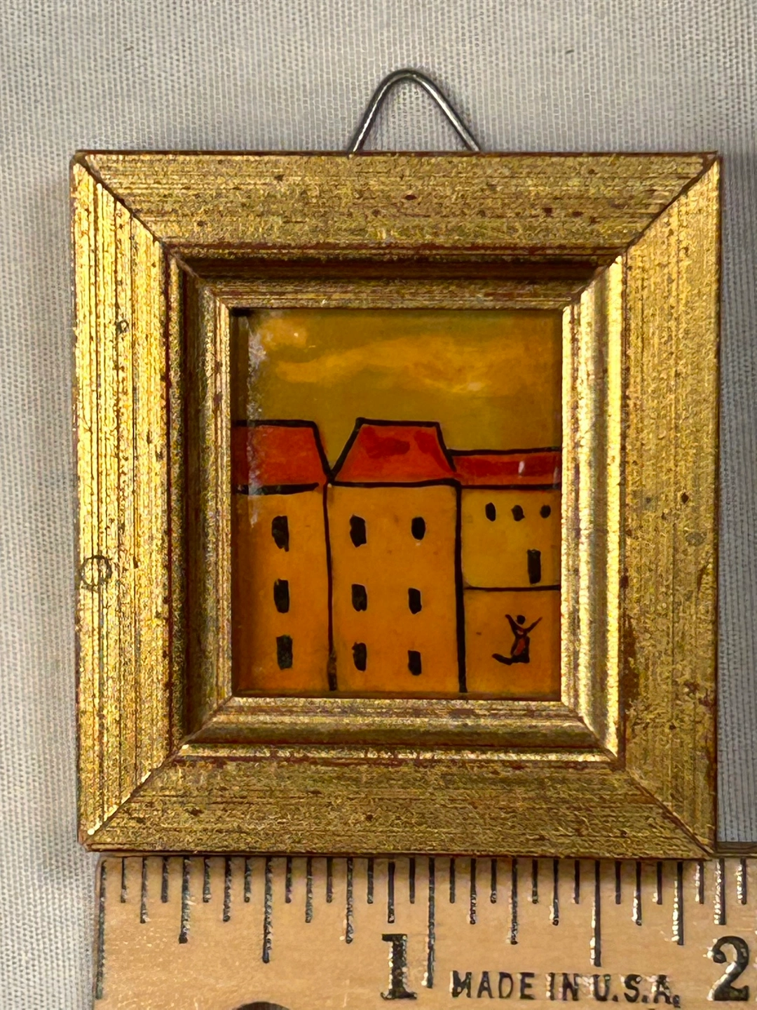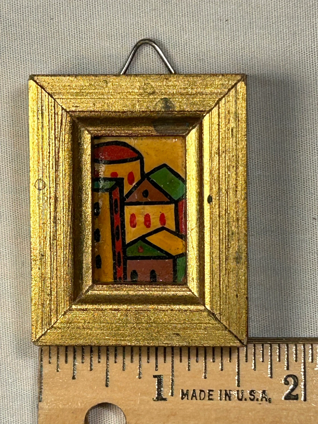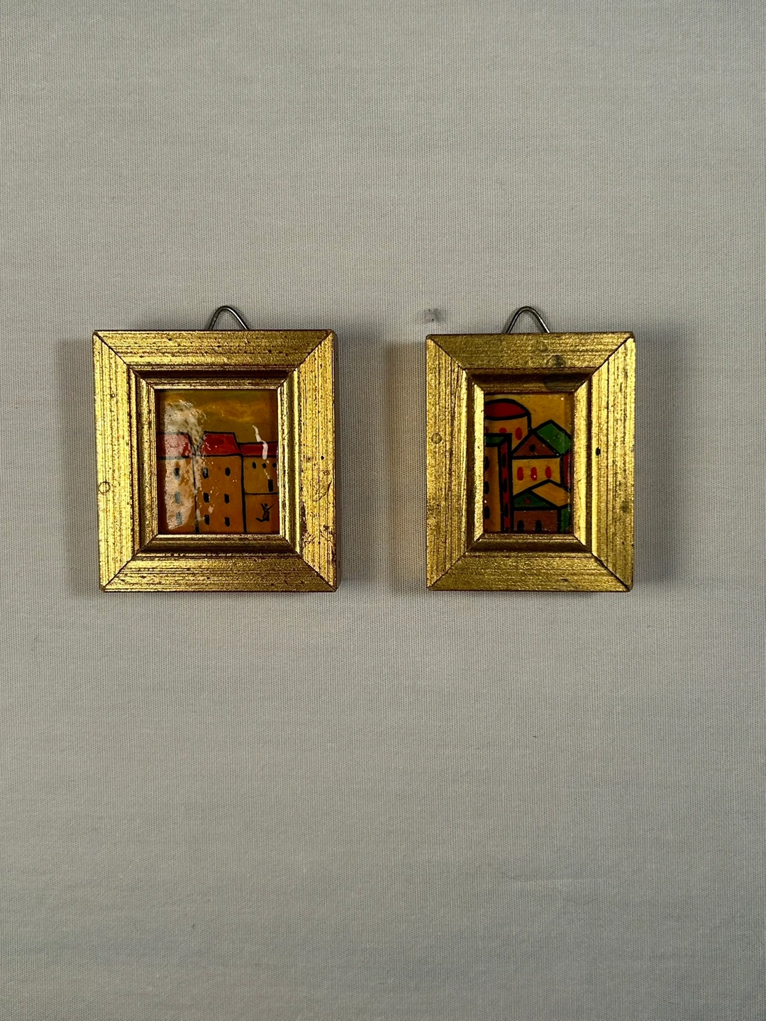 RARE By Elio Franco Quaceci 1974. Oil on cardboard. Colorful cityscape. Wooden frame. Exquisite detail. PRICE IS FOR 2. Recently sold at $90/per.