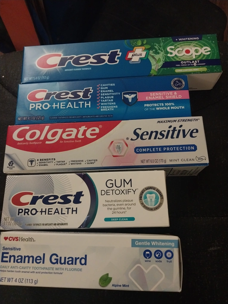 130i have several types of toothpaste...regular...sensitive...enamel repair...mouthwash...etc