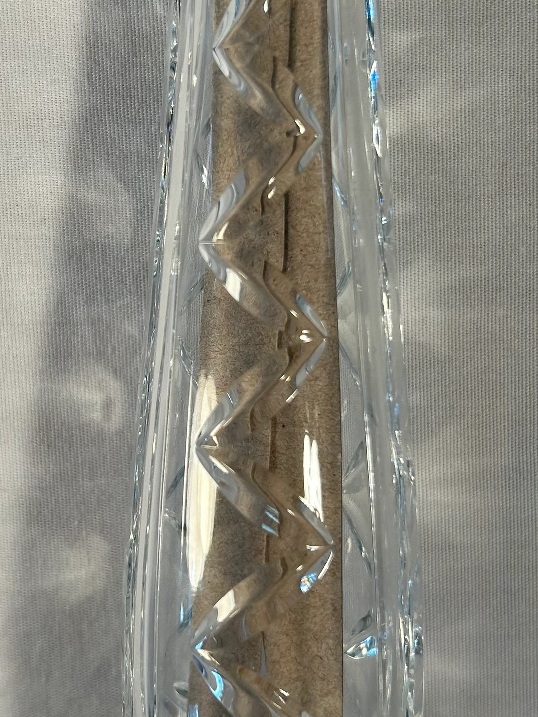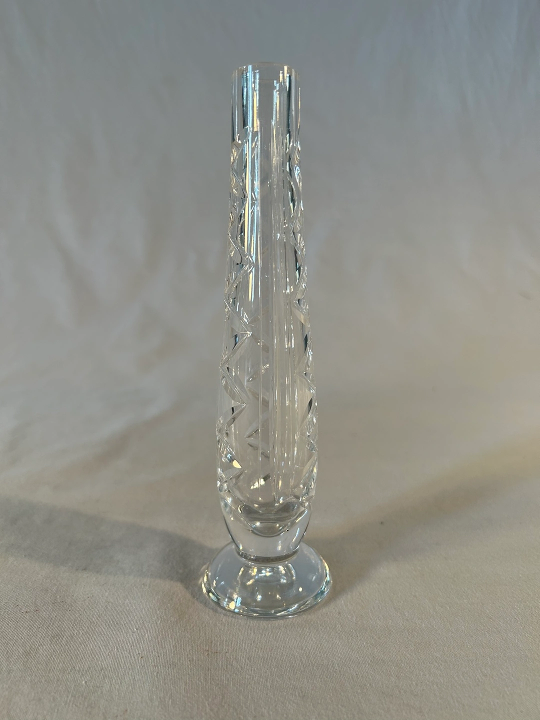 Vertical zig zag cut crystal design. Simply beautiful vase. Did you know crystal is the official gift for a 15th wedding anniversary? Wedding, bridal shower, Mothers’ Day, Valentine’s Day gift idea. Purchased in Ireland in 1980.