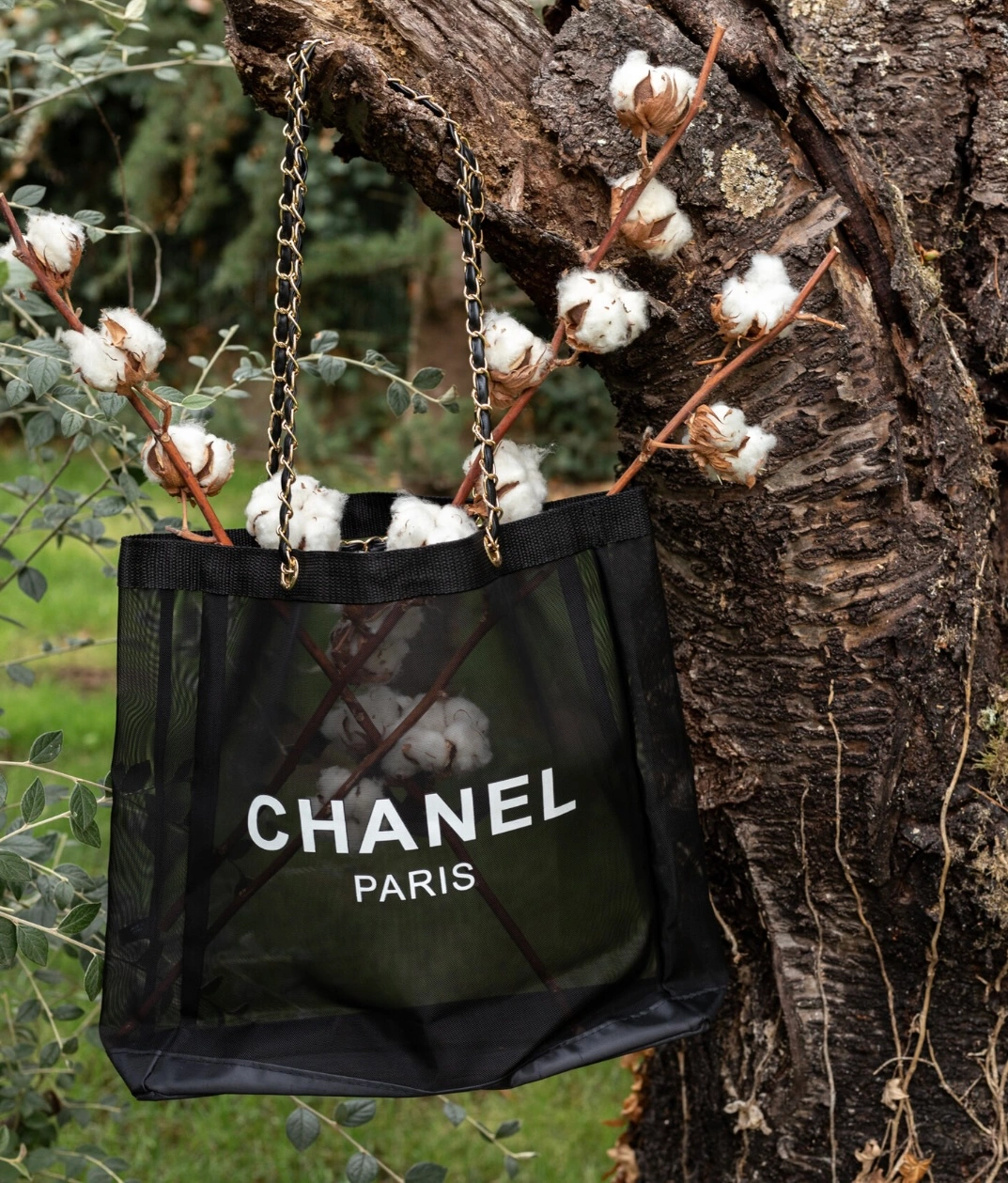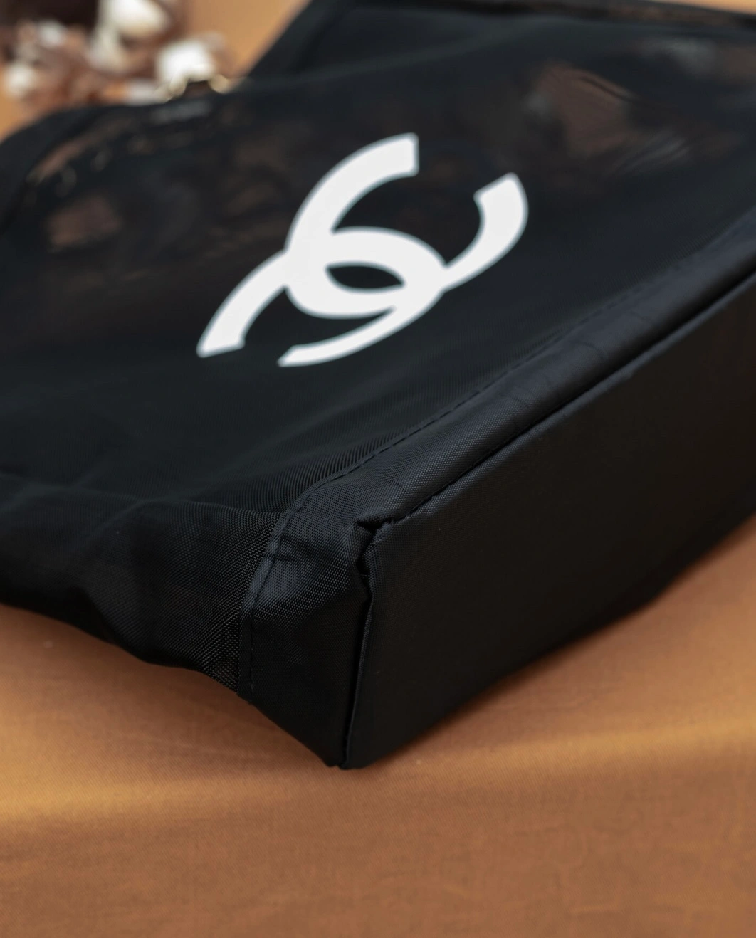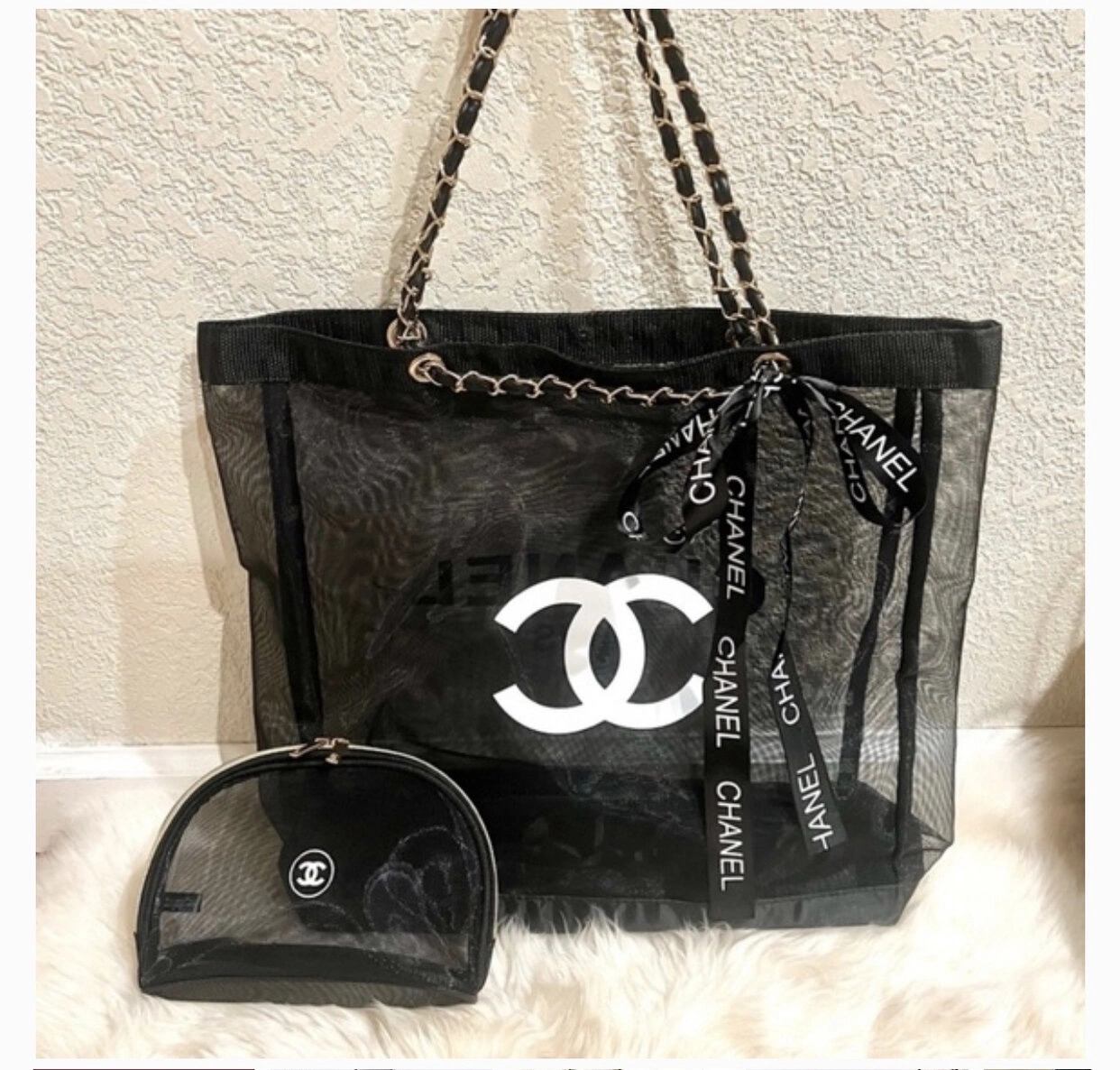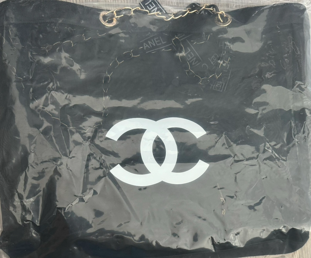 Chanel Beauty VIP Black Mesh Tote Bag & Cosmetic Pouch