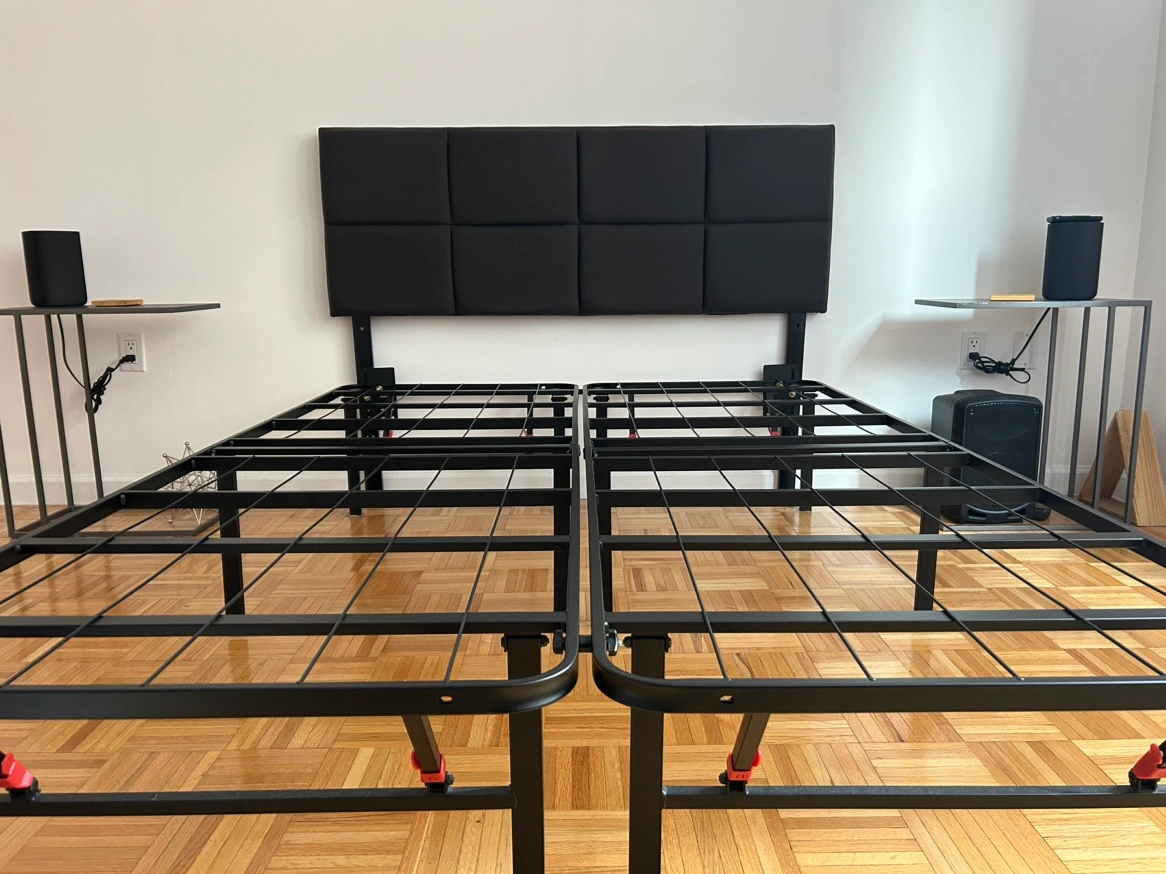 Designed for sleepers up to 250 pounds Full size platform bed frame offers a quiet, noise-free, supportive foundation for a mattress. No box spring needed Folding mechanism makes the frame easy to store and move in tight spaces Provides extra under-the-bed storage space with a vertical clearance of about 13 inches https://a.co/d/0hdAPlNo https://a.co/d/01T1xcut