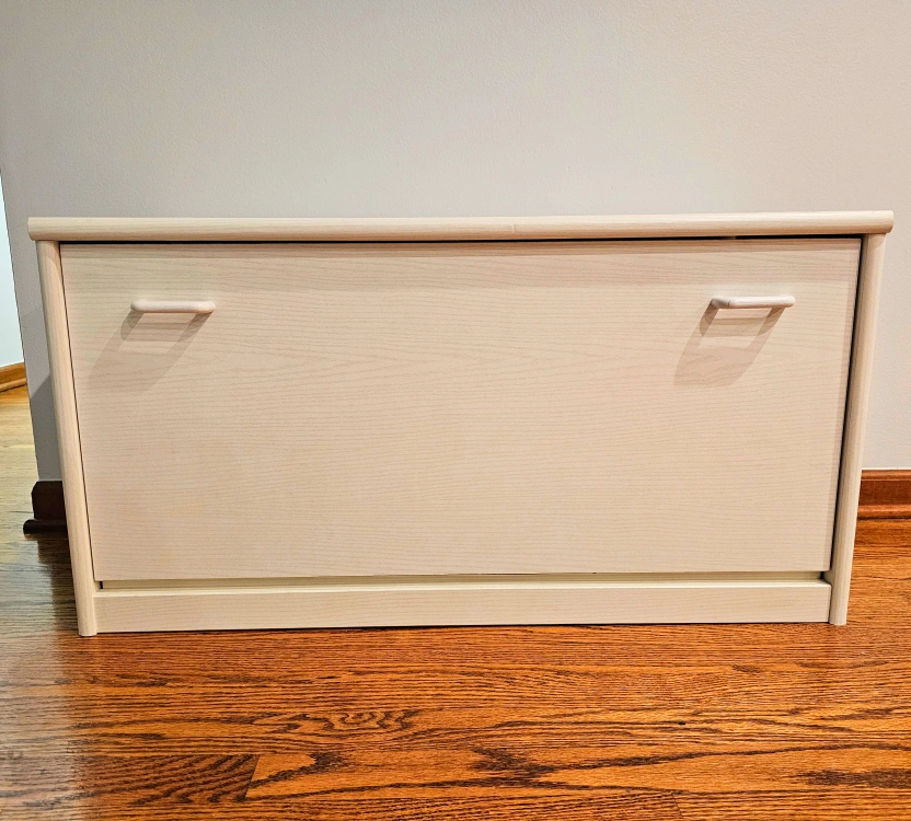 Beautiful fold out shoe shelf for sale. This is a solid cream colored piece. It has 3 hidden shoe racks that can be folded out of sight to make your home look tidier than ever! This is the perfect piece for a closet, entryway, or foyer. Please feel free to reach out with any questions! Pickup in Old Town