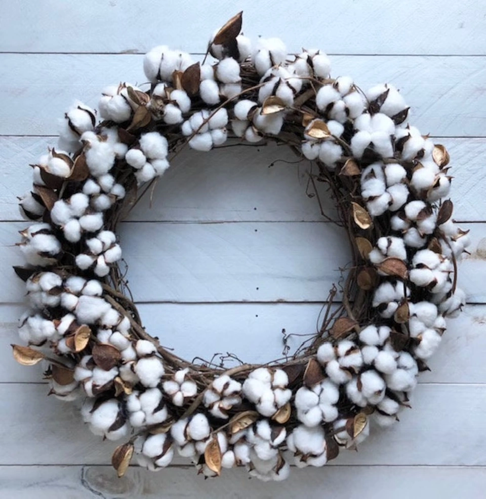 farmhouse style cotton-ball wreath
