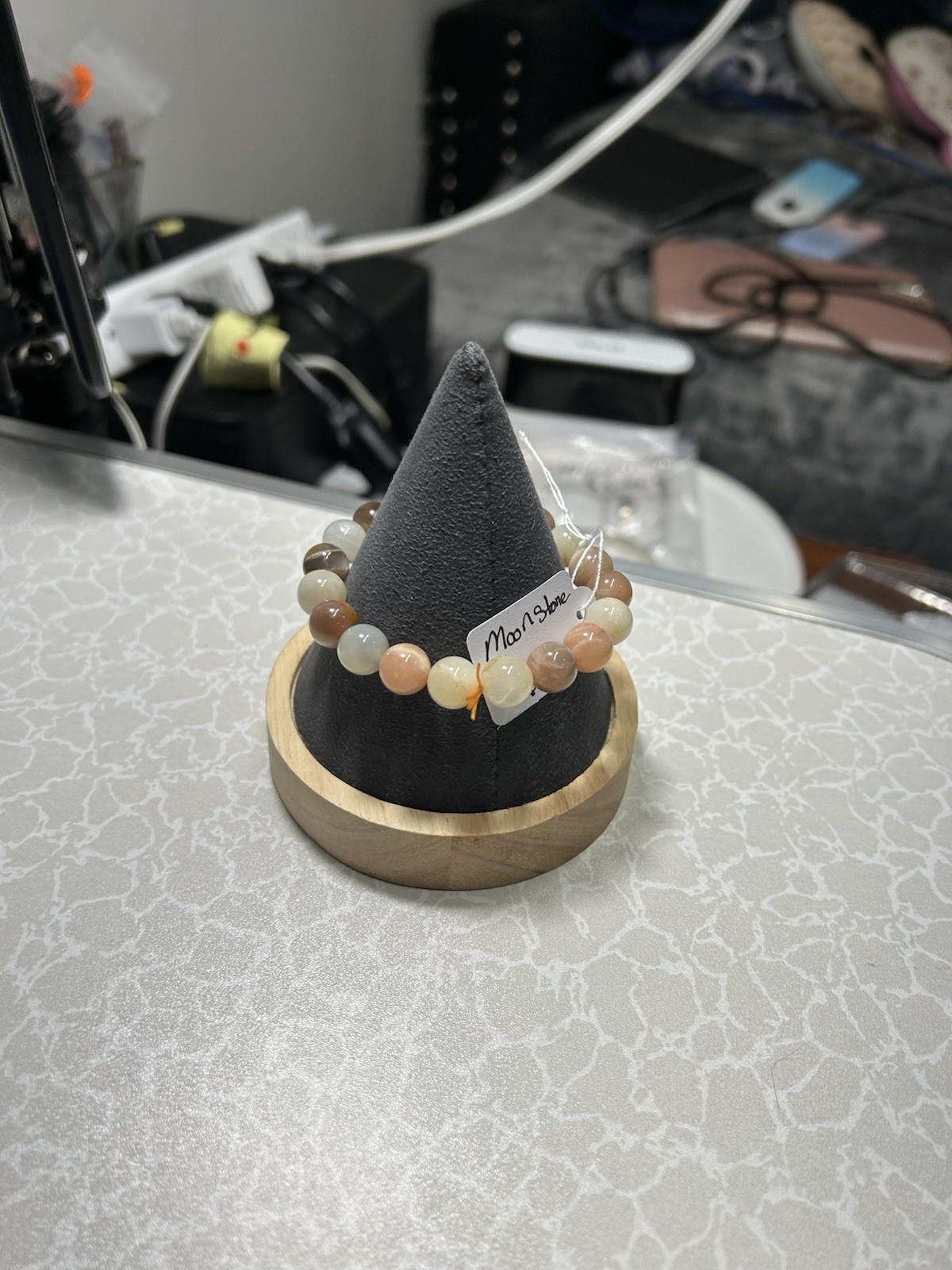 Handmade beaded bracelet featuring multicolor round Moonstone gemstones. New with tags.