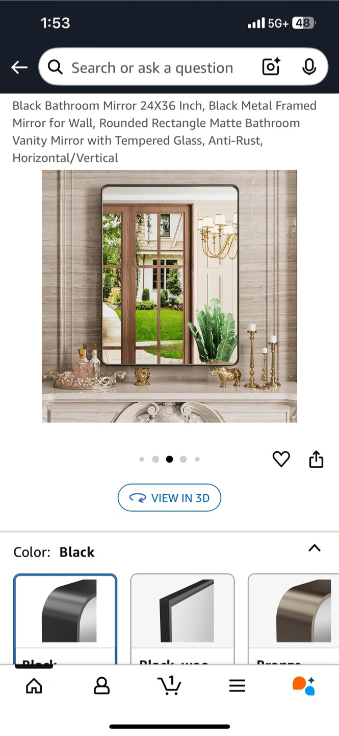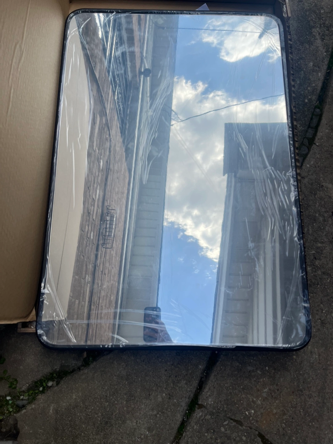 Rounded rectangle matte black metal framed bathroom vanity mirror. Tempered glass, anti-rust. Horizontal/vertical. Brand new in box.