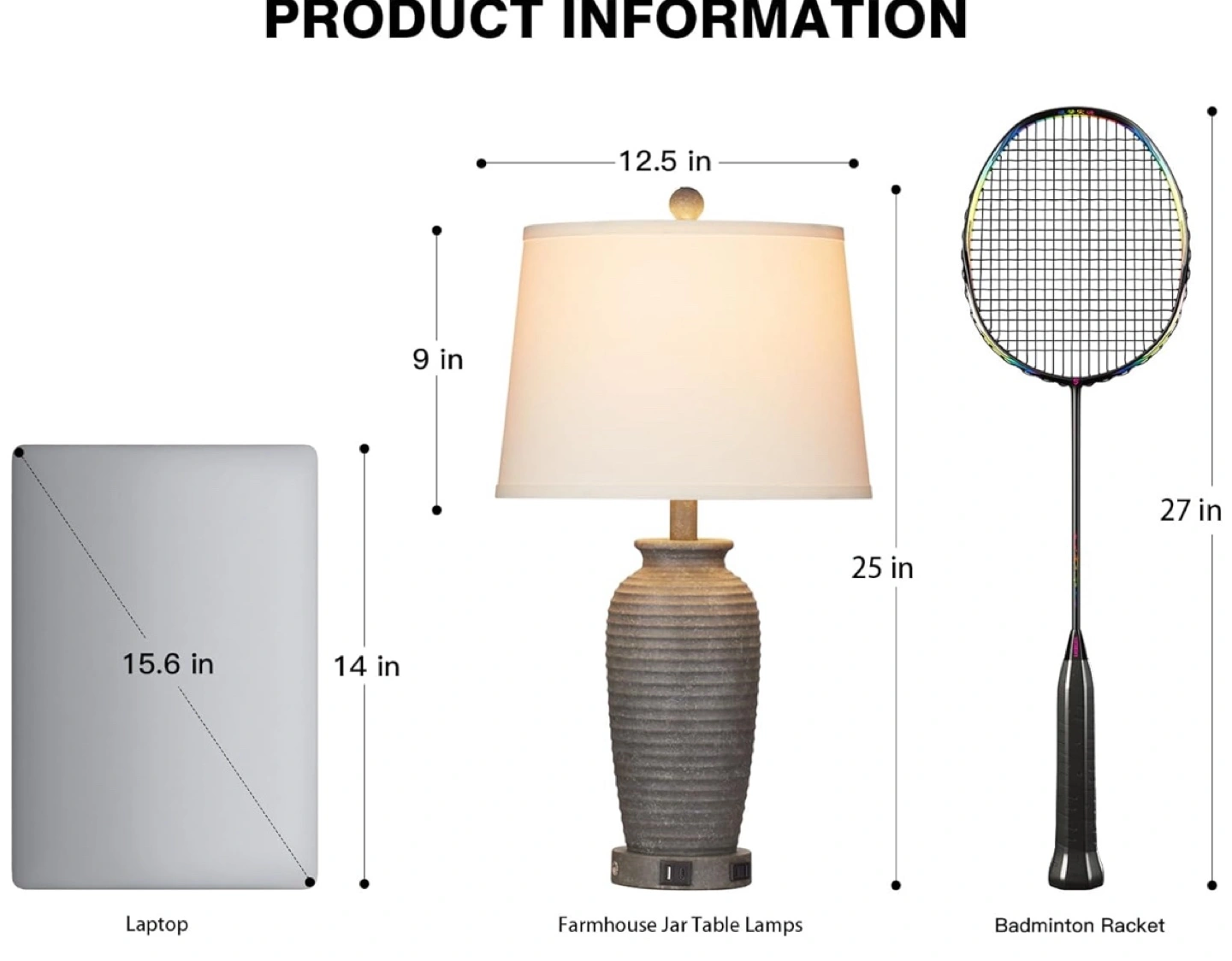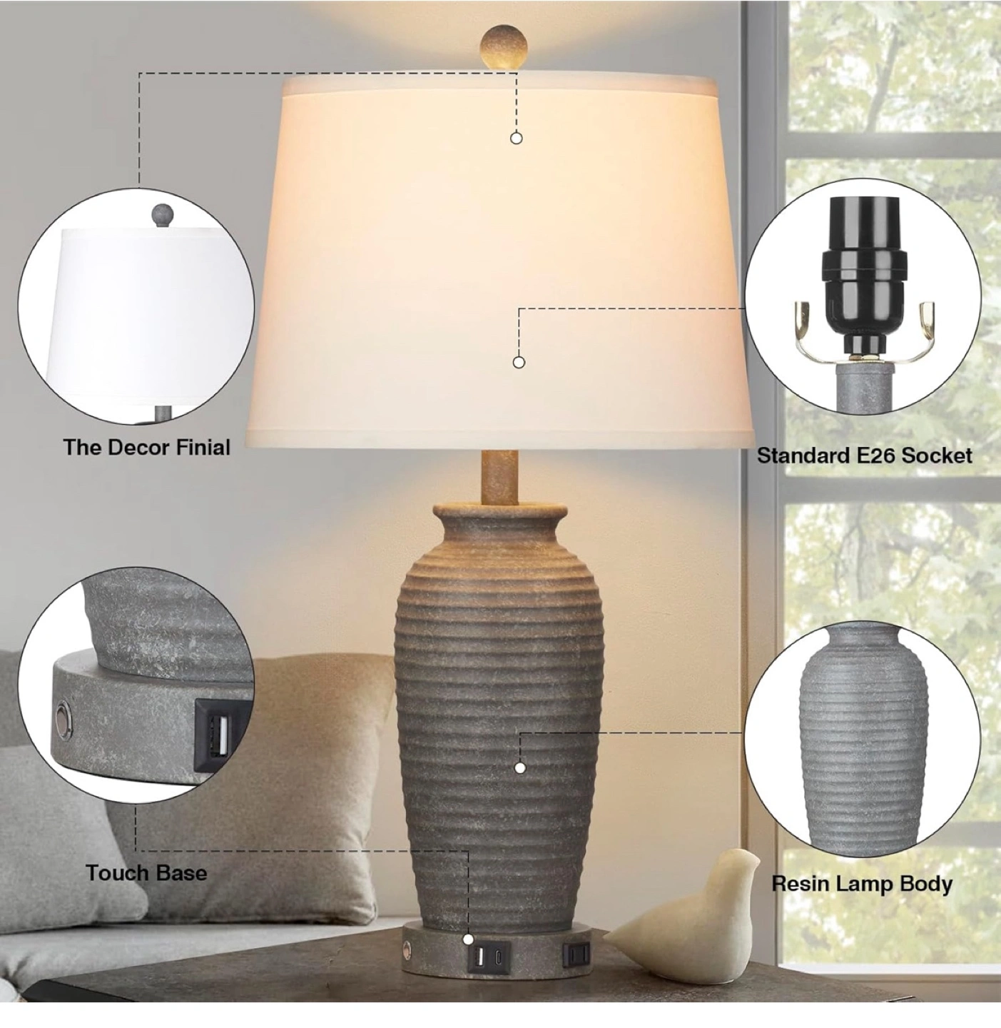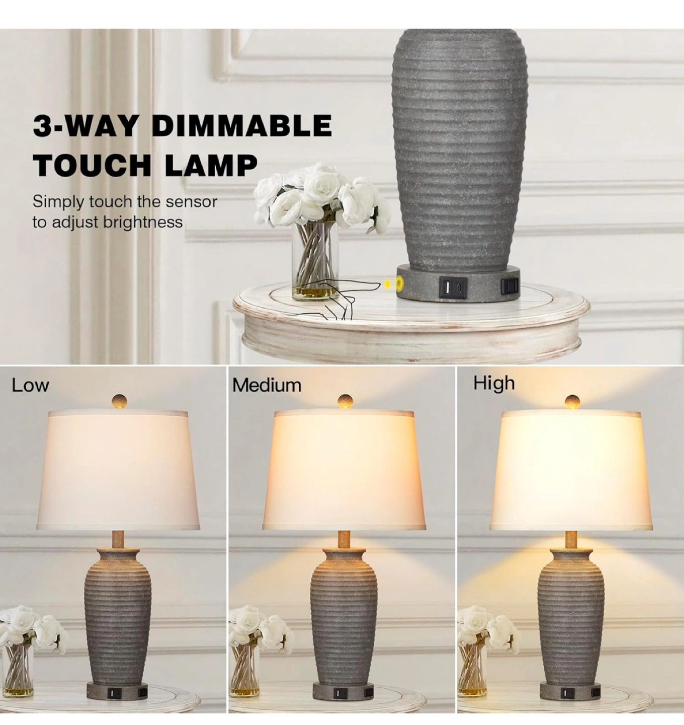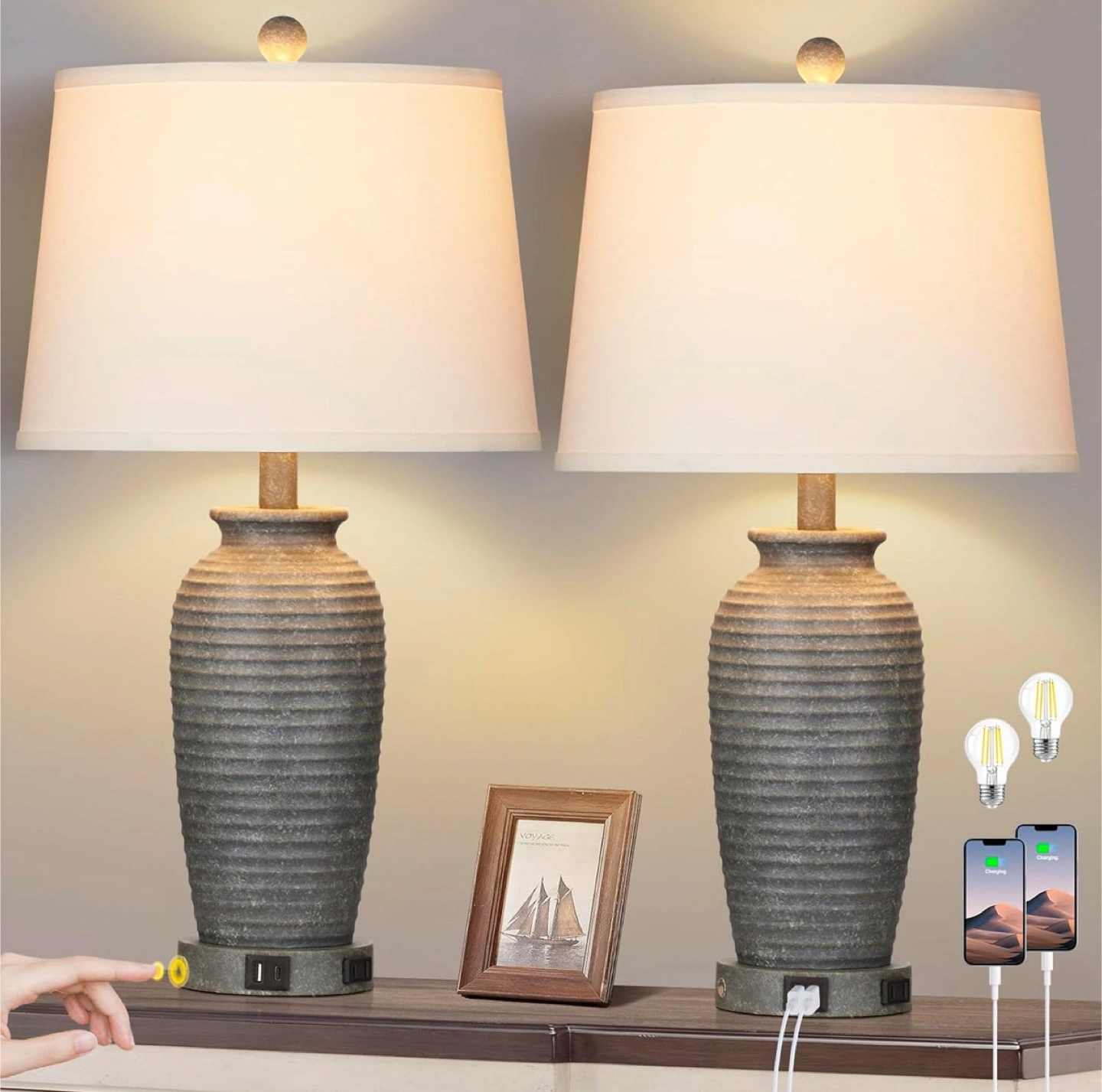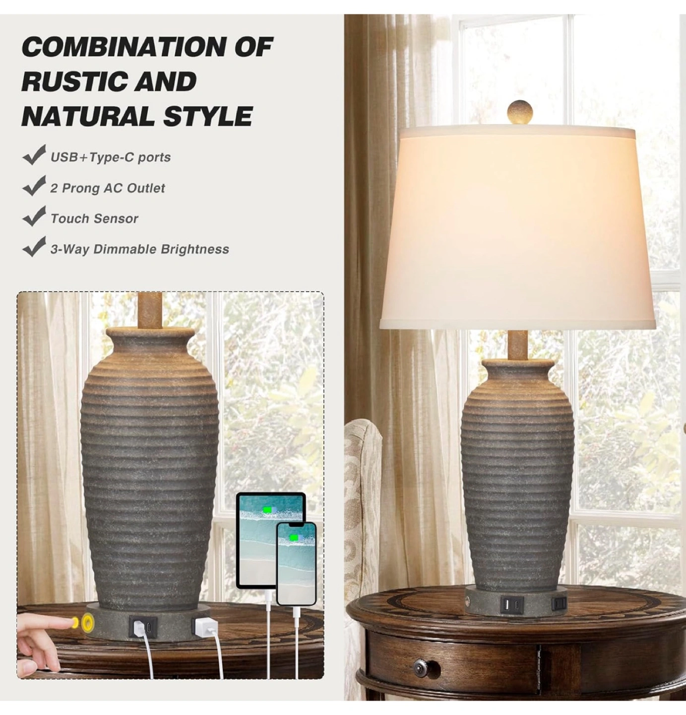 6625" Farmhouse Jar Table Lamps Set of 2, 3 Way Touch Control Rustic Bedside Lamps with USB A+C Ports & AC Outlet, Pot Nightstand Lamps for Bedroom Living Room (LED Bulbs Included). BRAND NEW. IN ORIGINAL PACKAGING- PICK UP MASPETH QUEENS
