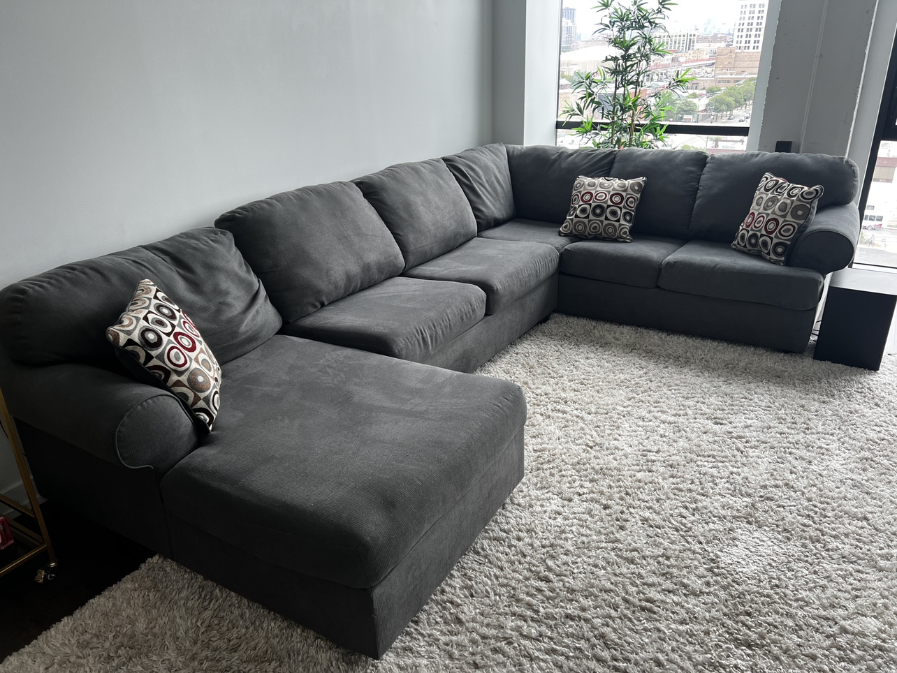 -Normally: $2,600 after delivery!/ Selling $1,800 -Product Dimensions: 147”W x 38” - 93”D x 36"H -Just professionally cleaned and de-pilled. -SOLD OUT on most websites, few have, nor can deliver to Chicago.