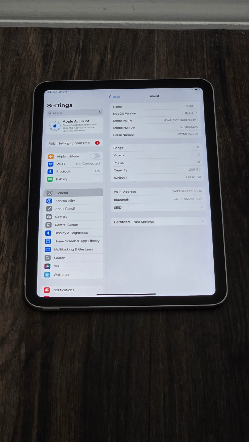 Come with a nice cover; Screen Size: 10.9" Storage: 256GB Color: Space Silver Condition: Factory reset, ready for new owner iCloud/Locks: None (completely unlocked) Battery Health: 88% Charger: Not included 🔌 We have a power outlet available — you’re welcome to test the device before purchase. Important: No trades No purchases from individuals No advance payments No shipping Payment Options: Cash, Zelle, Cash App, Venmo 📍 Pickup only at: 3485 Neptune Ave, Brooklyn, NY 11224 💲 Price is firm (non-negotiable)