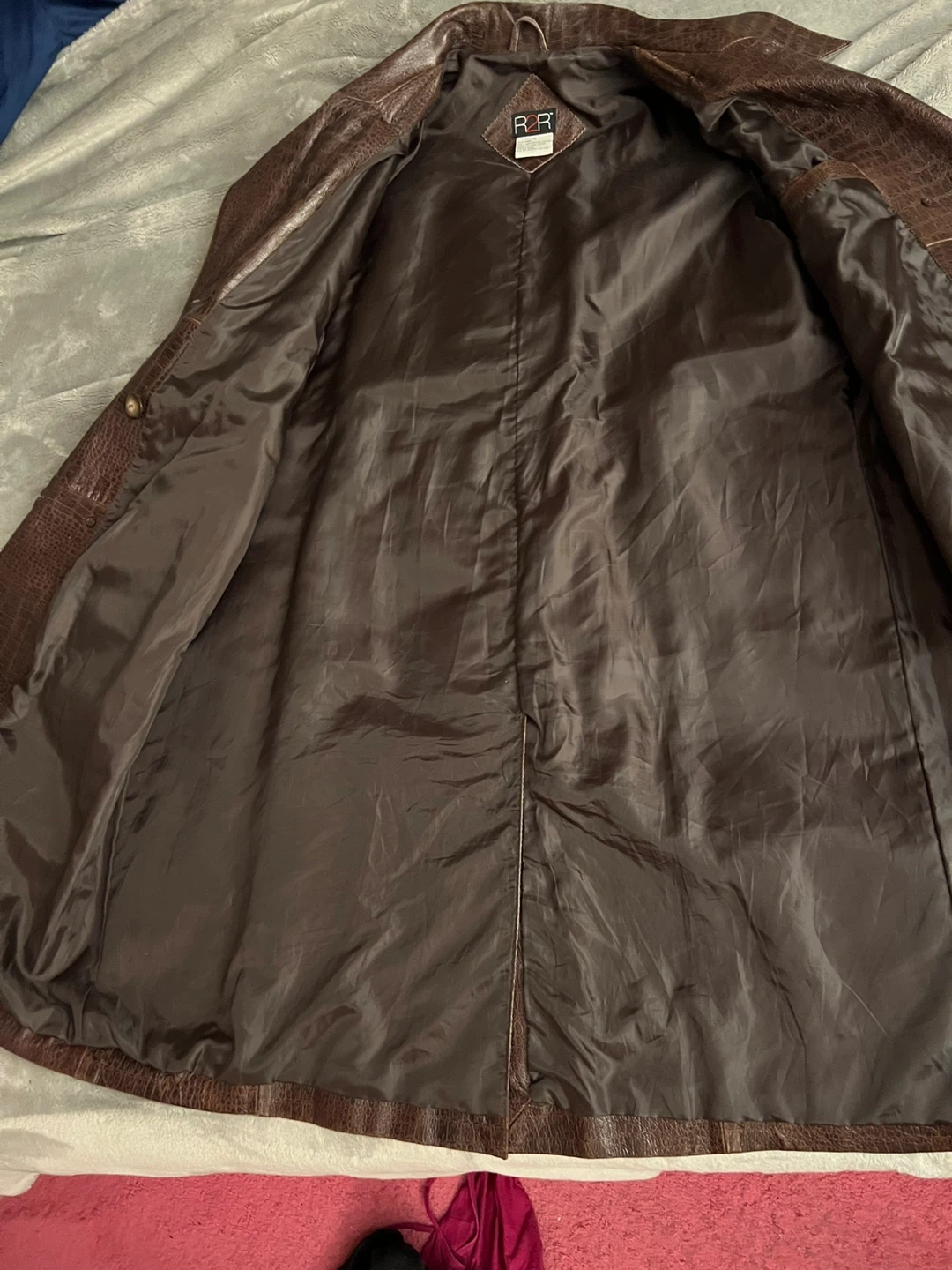 R2R Brown Crocodile Embossed Genuine Leather Trench Coat XL