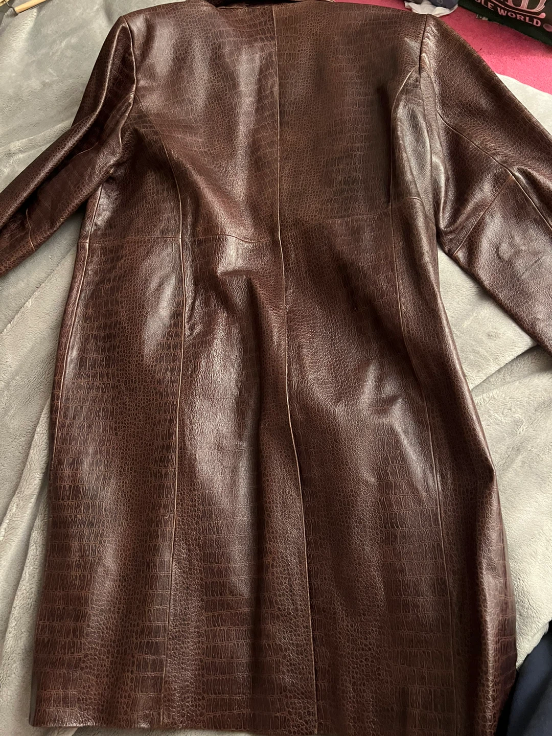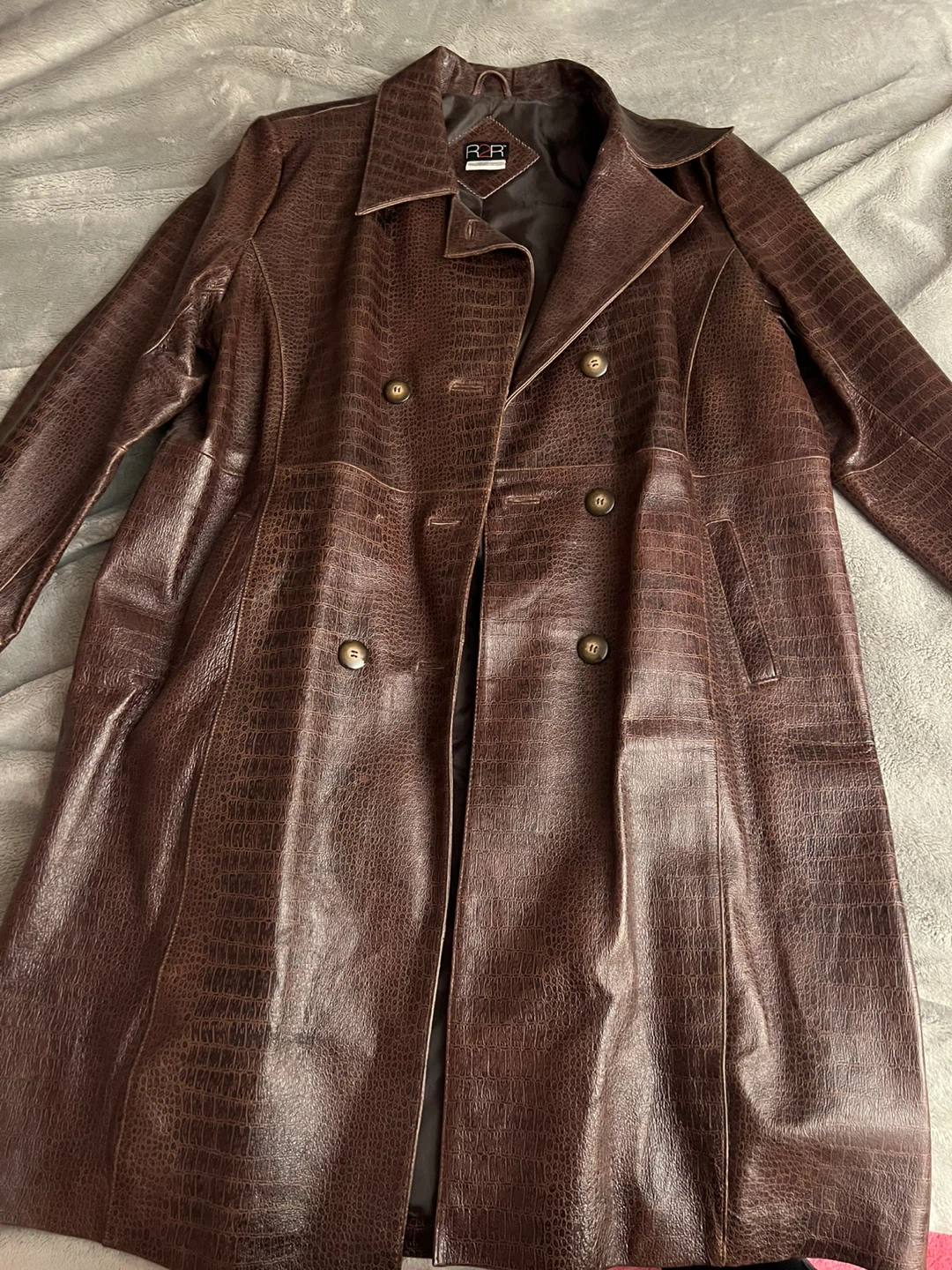 R2R Brown Crocodile Embossed Genuine Leather Trench Coat XL