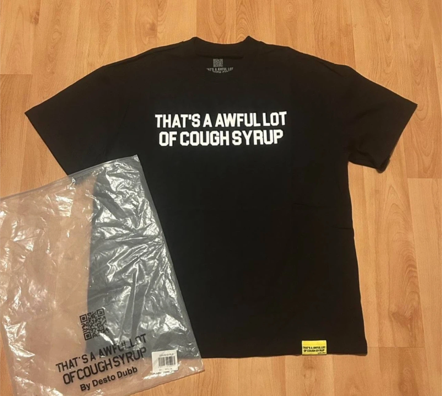 Bold Statement Piece Featuring The “That’s A Awful Lot Of Cough Syrup” Front And Back Print That Instantly Stands Out.