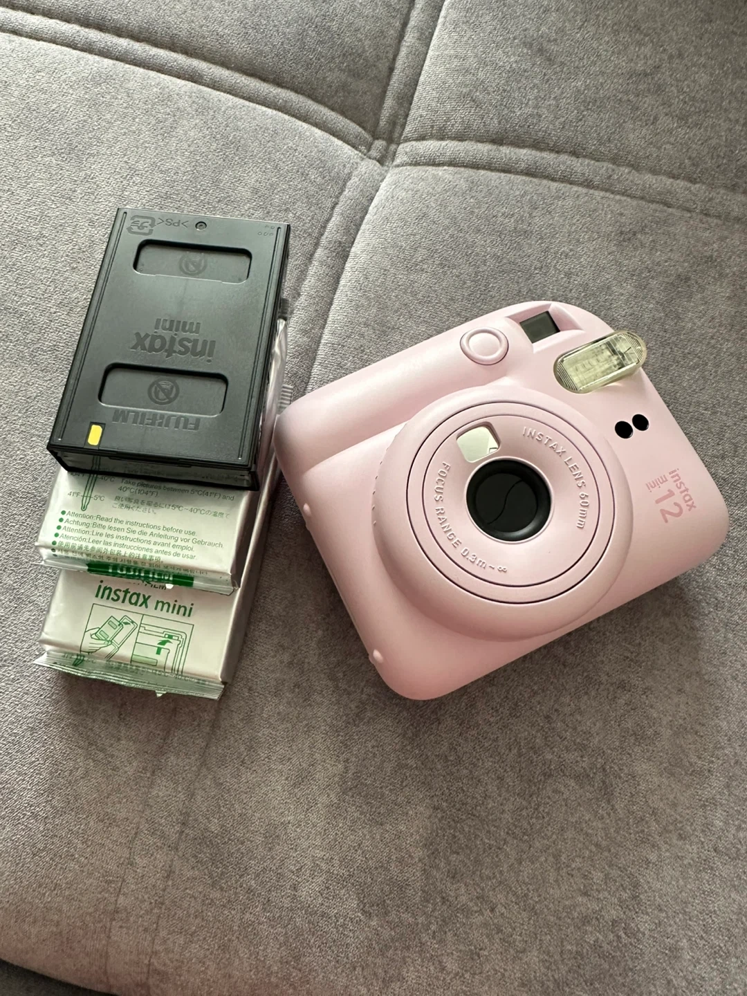 Selling a cute Fujifilm Instax Mini 12 instant camera in pink! It's in great condition and ready for you to capture some fun memories. It has a focus range of 0.3m to infinity and Instax lens 60mm. Get ready to snap and share!