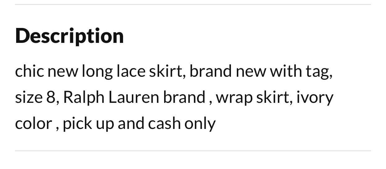 Brand new Ralph Lauren ivory color Long wrap skirt Size 8 Pick up Cash only