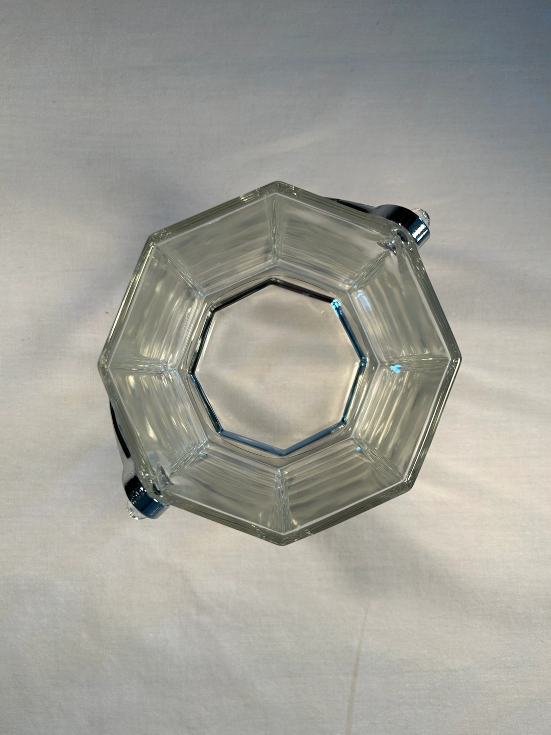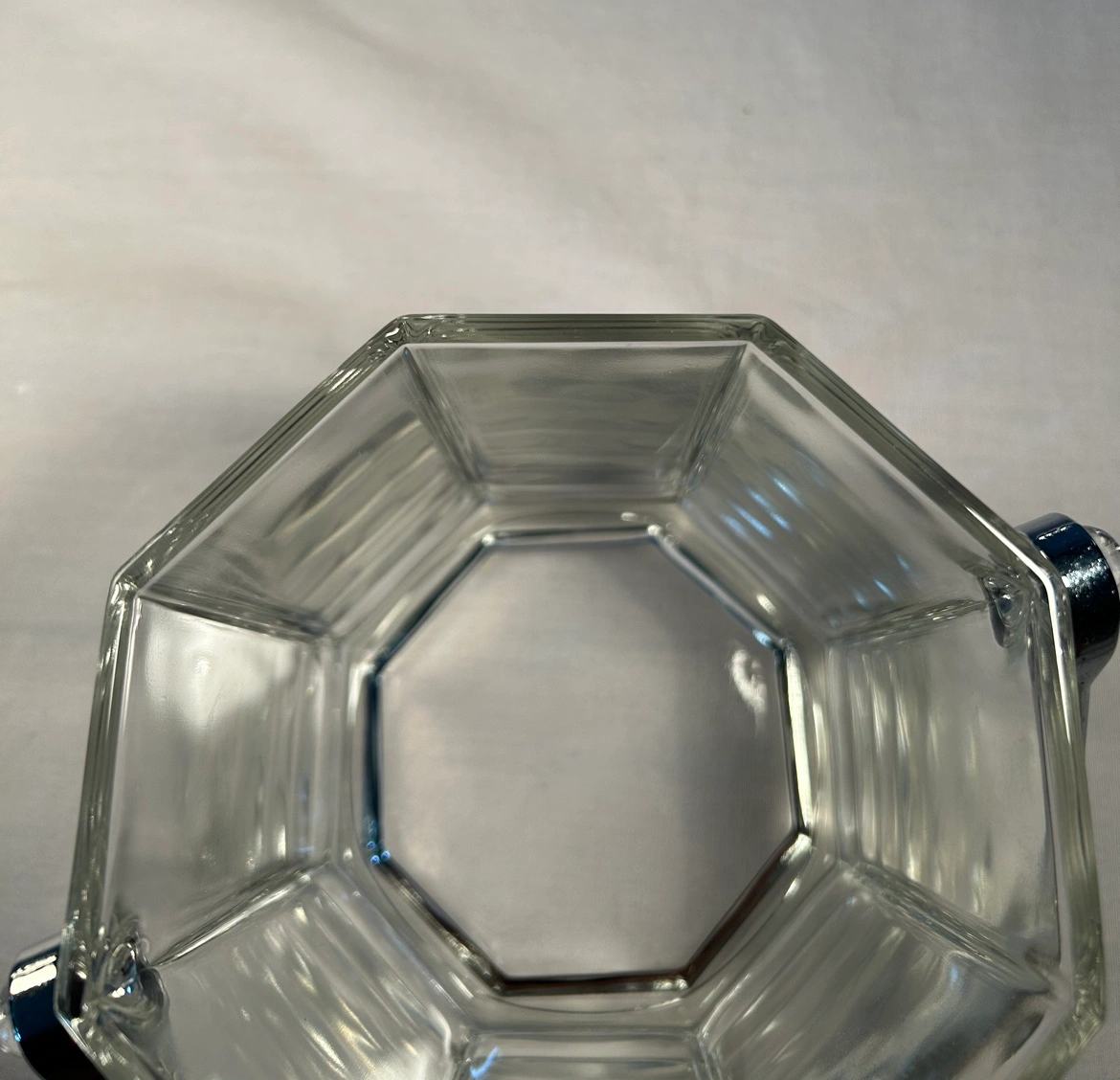 Vintage 1980 Luminarc Octime Verrerie d’ Arques - since 1825. Made in France. -Octagon shape, -Glass is 4 cm thick, -Chrome handle. Can be used as vase, ice bucket, classy catchall. Wedding, shower, housewarming gift.