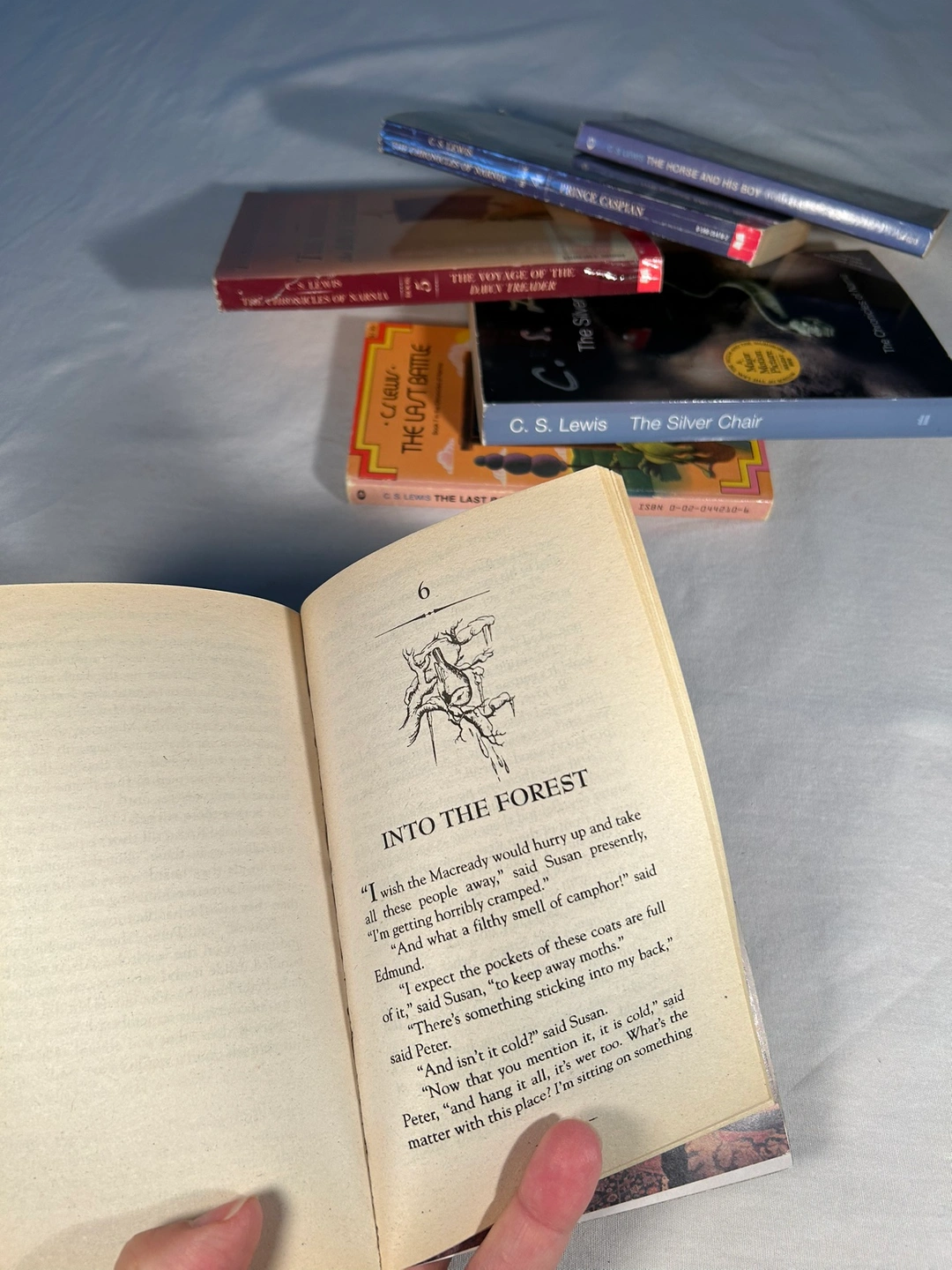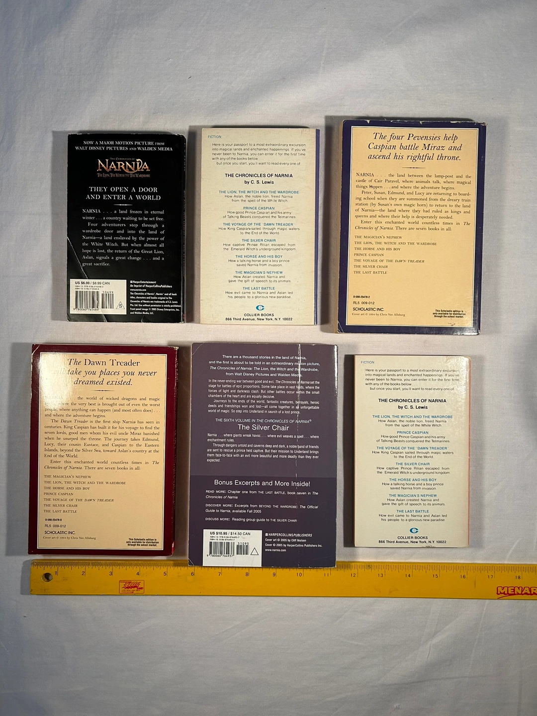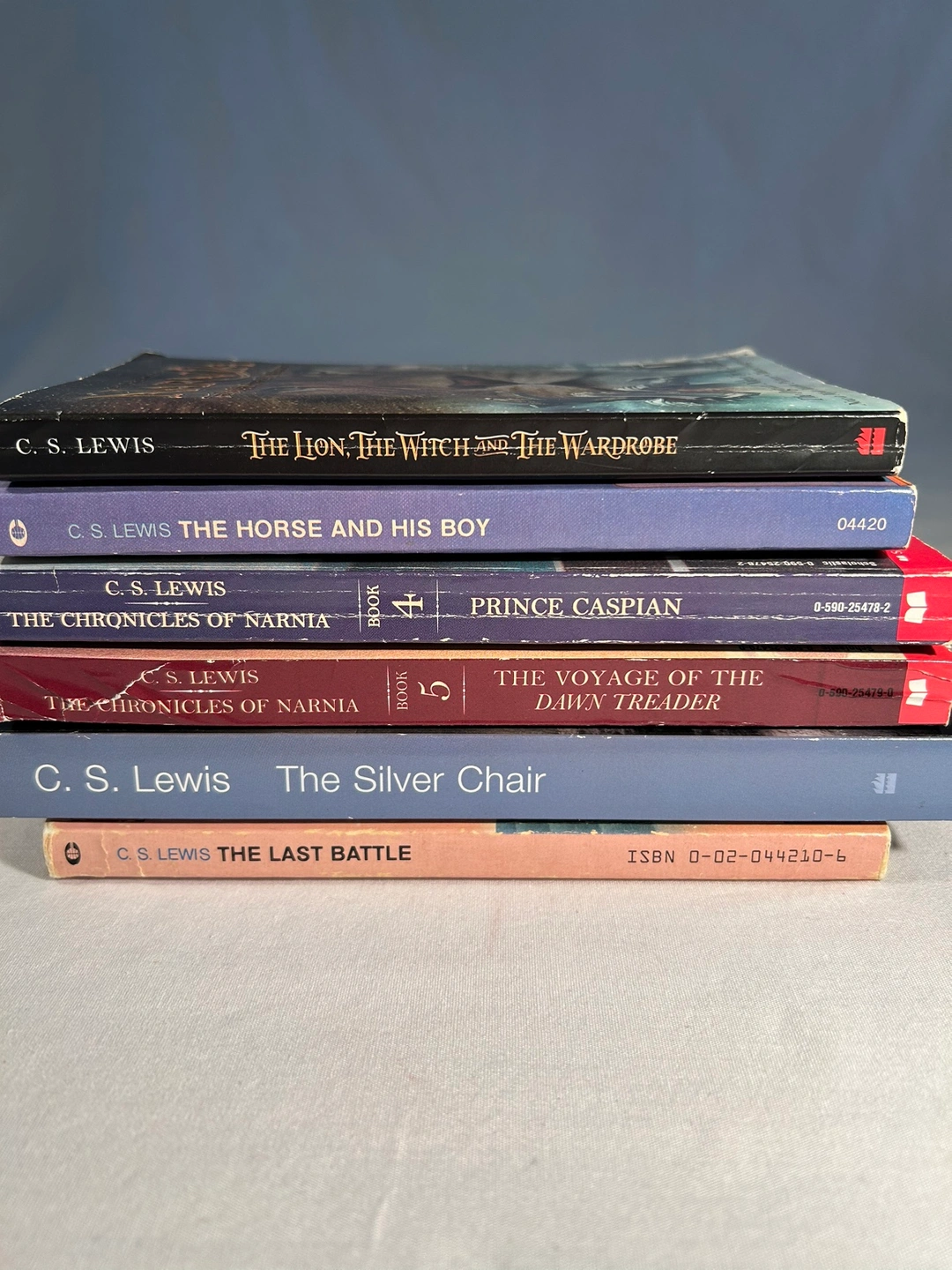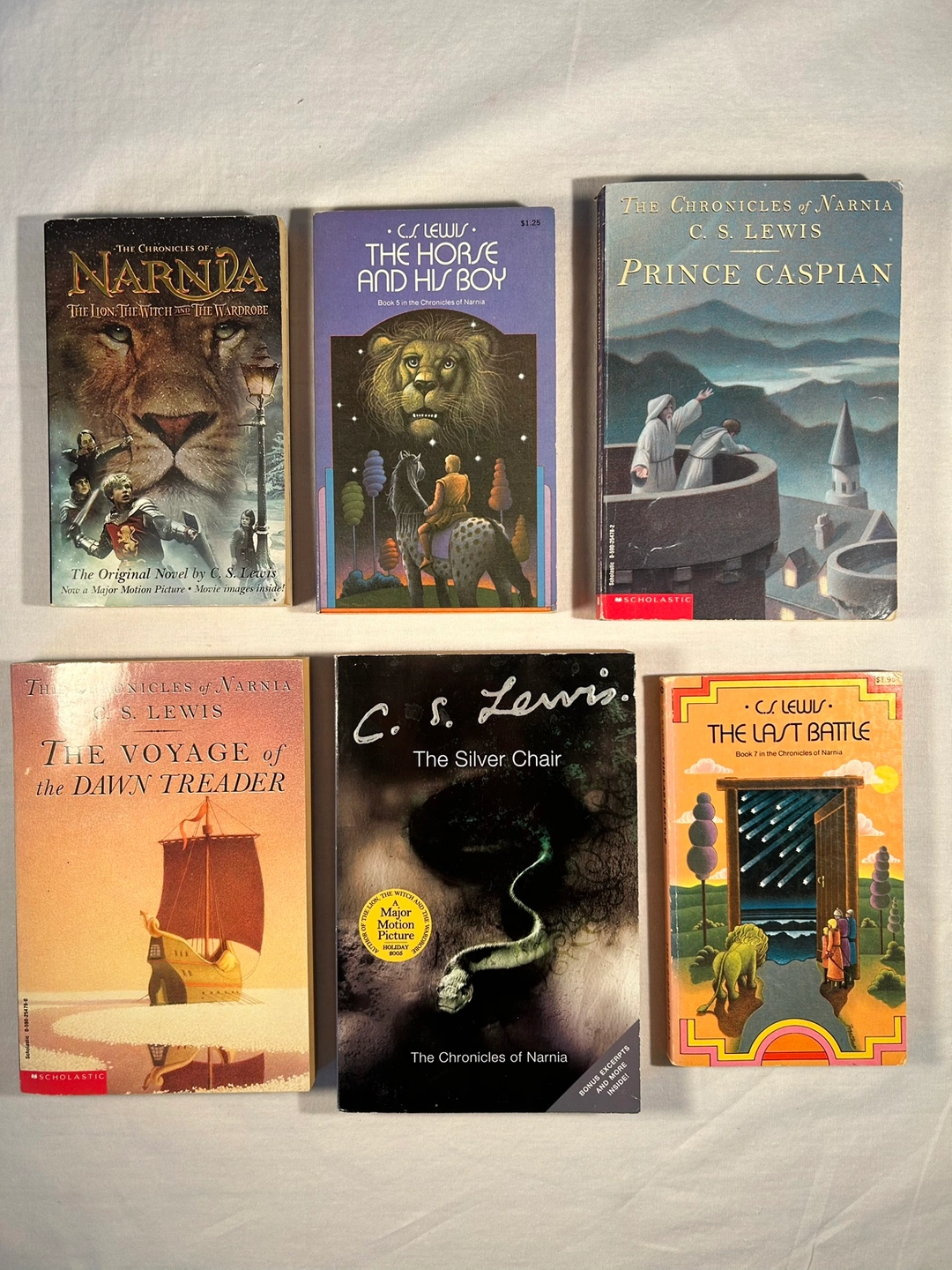 Classic required reading for ages 8-12. Six of seven in Narnia series incl “The Lion the Witch and the Wardrobe” PLUS choose one additional Lewis non-fiction, see photo. Total of 7 used paperback books.