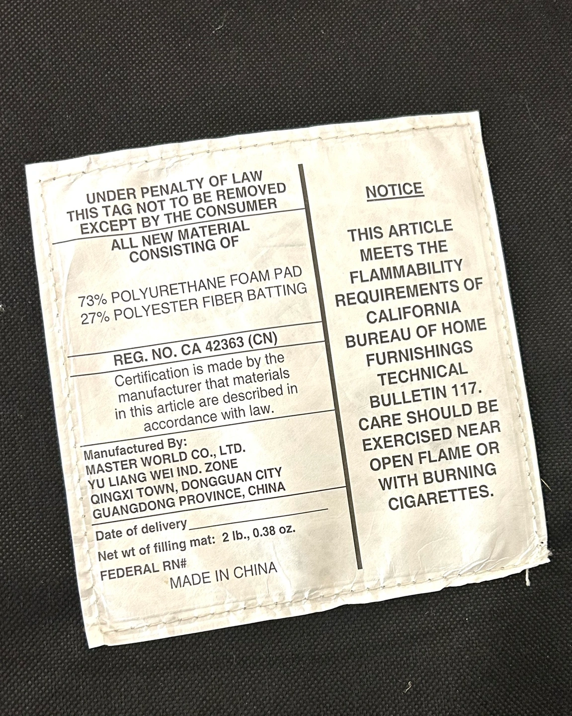 ALL NEW MATERIAL CONSISTING OF 73% POLYURETHANE FOAM PAD 27% POLYESTER FIBER BATTING Faux leather. Additional Information see pictures
