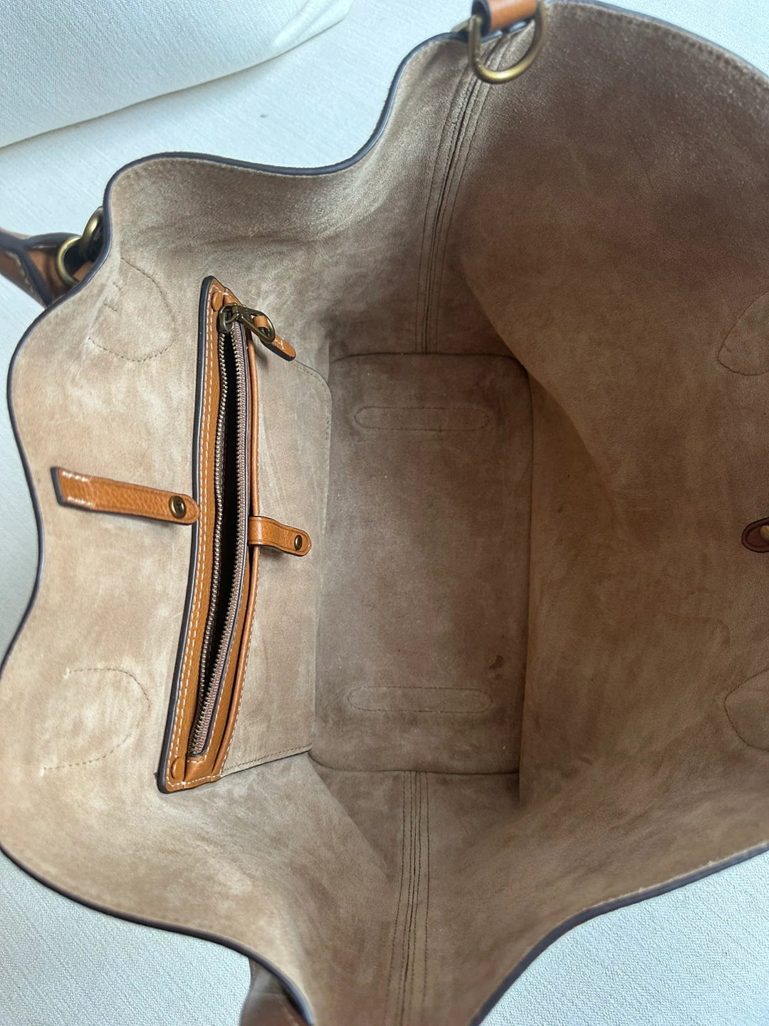 This brown leather Polo bellport handbag is so chic and has only been used about 5 times. It has been primarily stored in my closet for about a year and a half. Retailing for 900 USD, this bag has been gently pre loved.