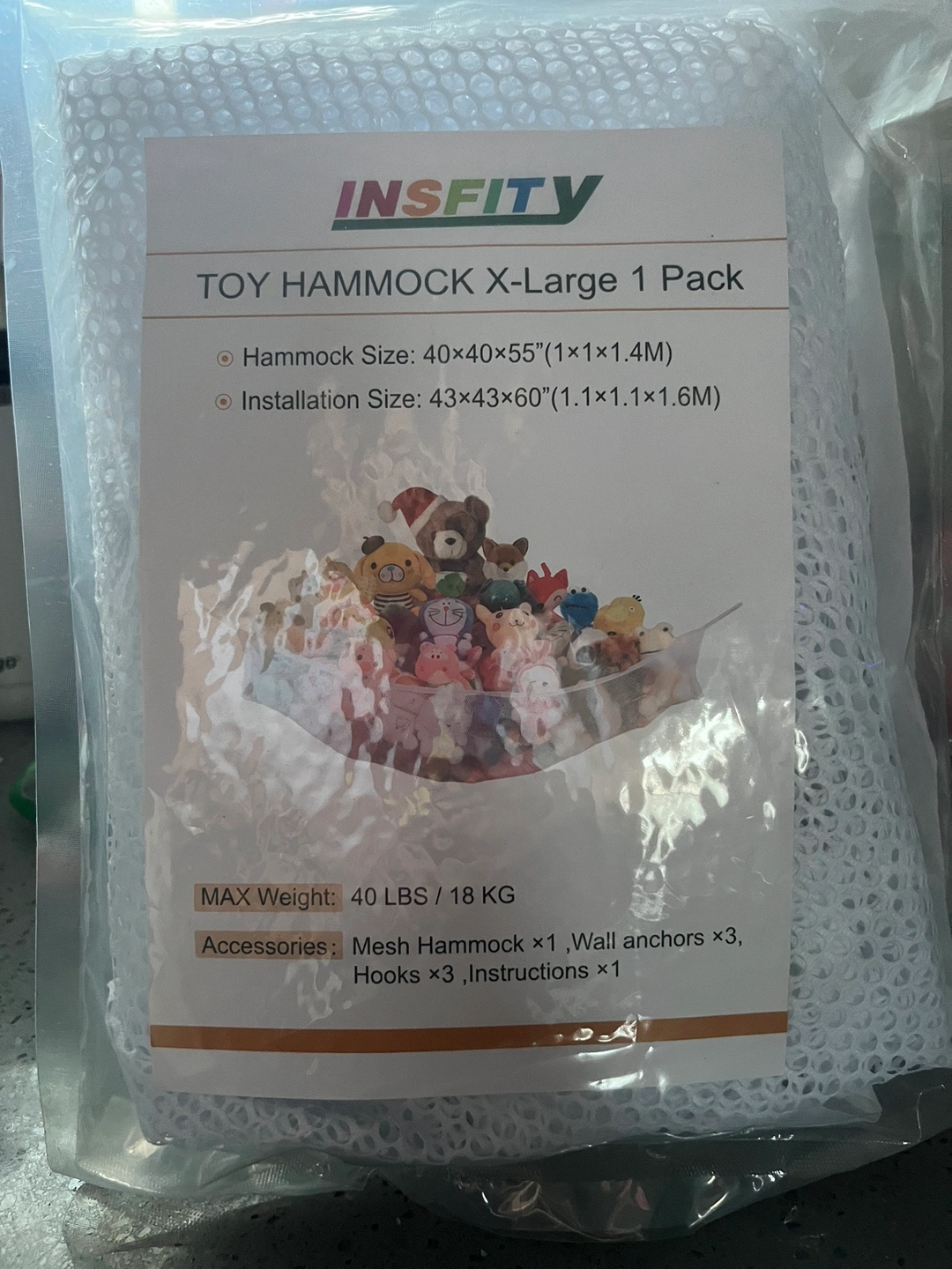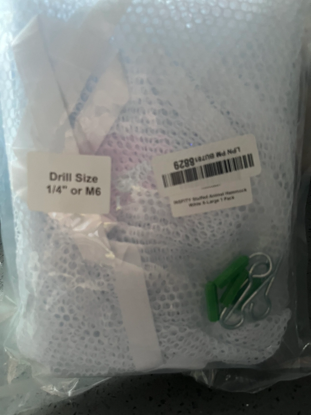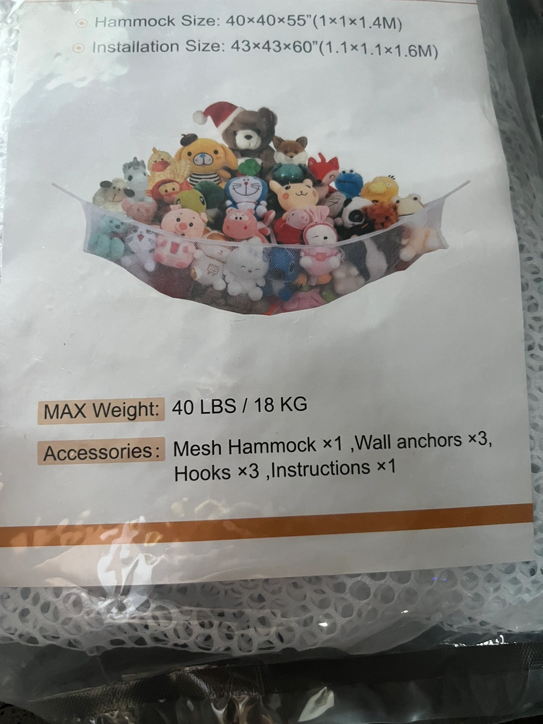 White Toy Hammock X-Large - great for organizing stuffed animals. Comes with all the installation accessories.