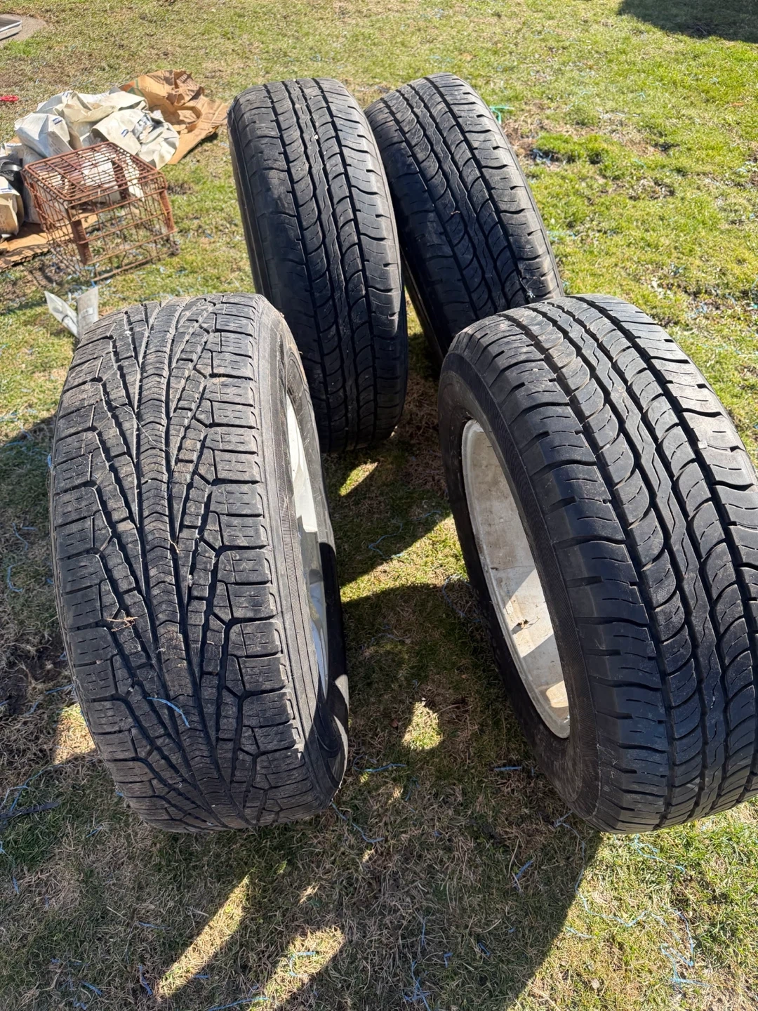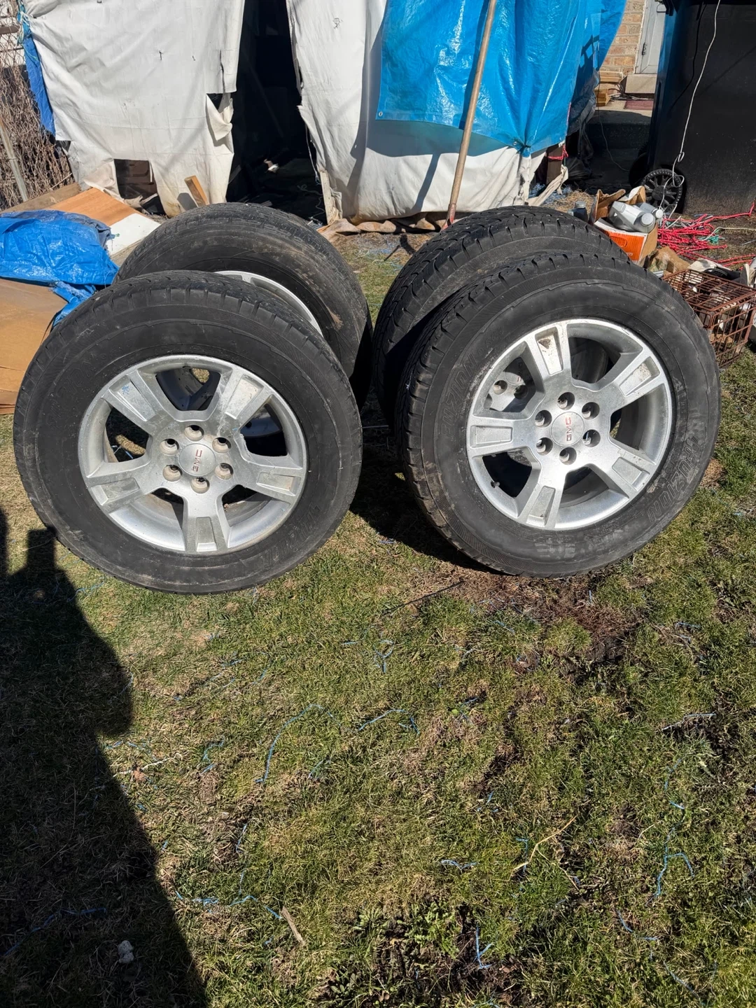 Set of four GMC alloy wheels with tires. Tire size is 255/65R18. These wheels come with a 6-lug bolt pattern. They're ready for your truck or SUV!