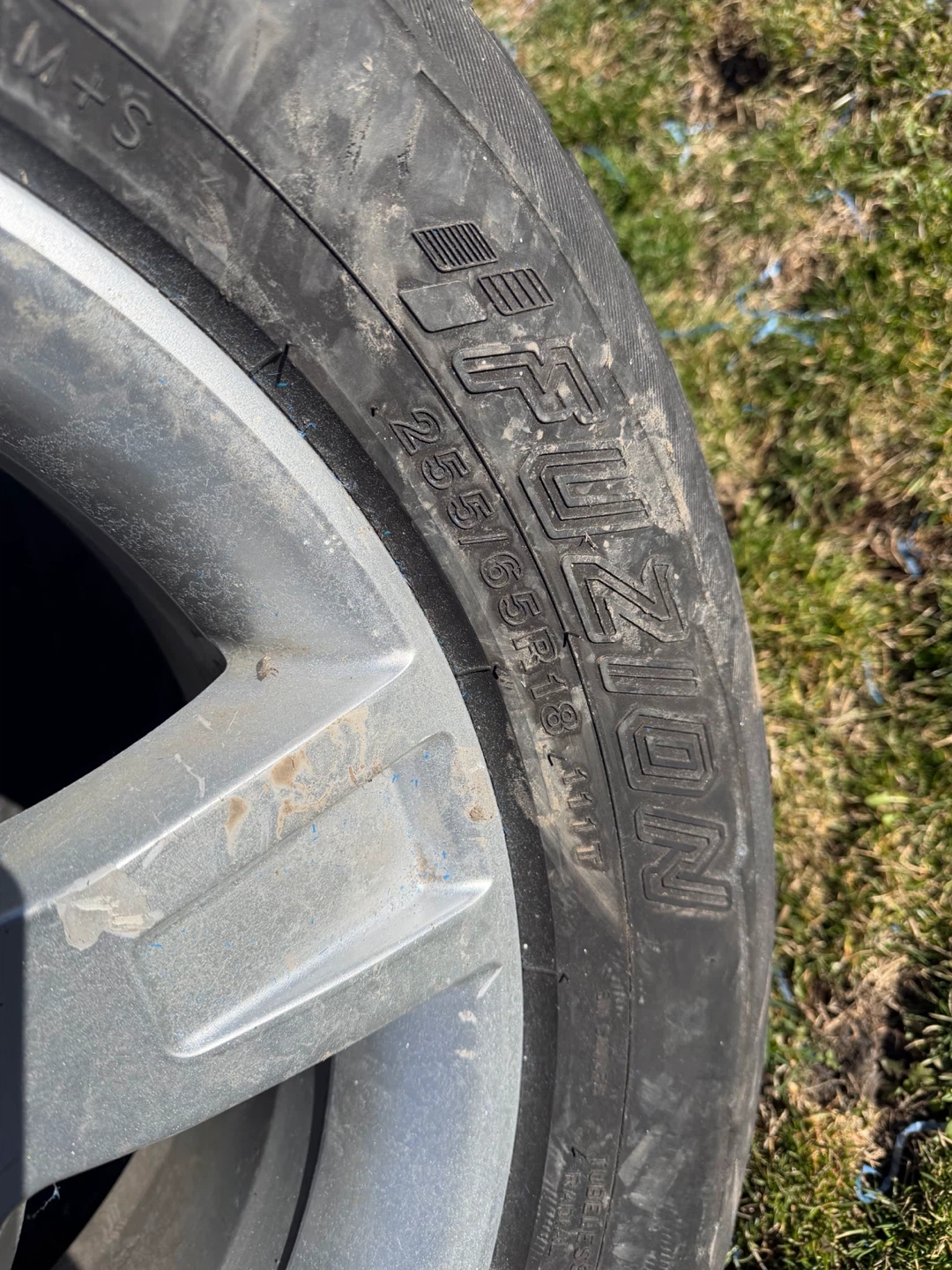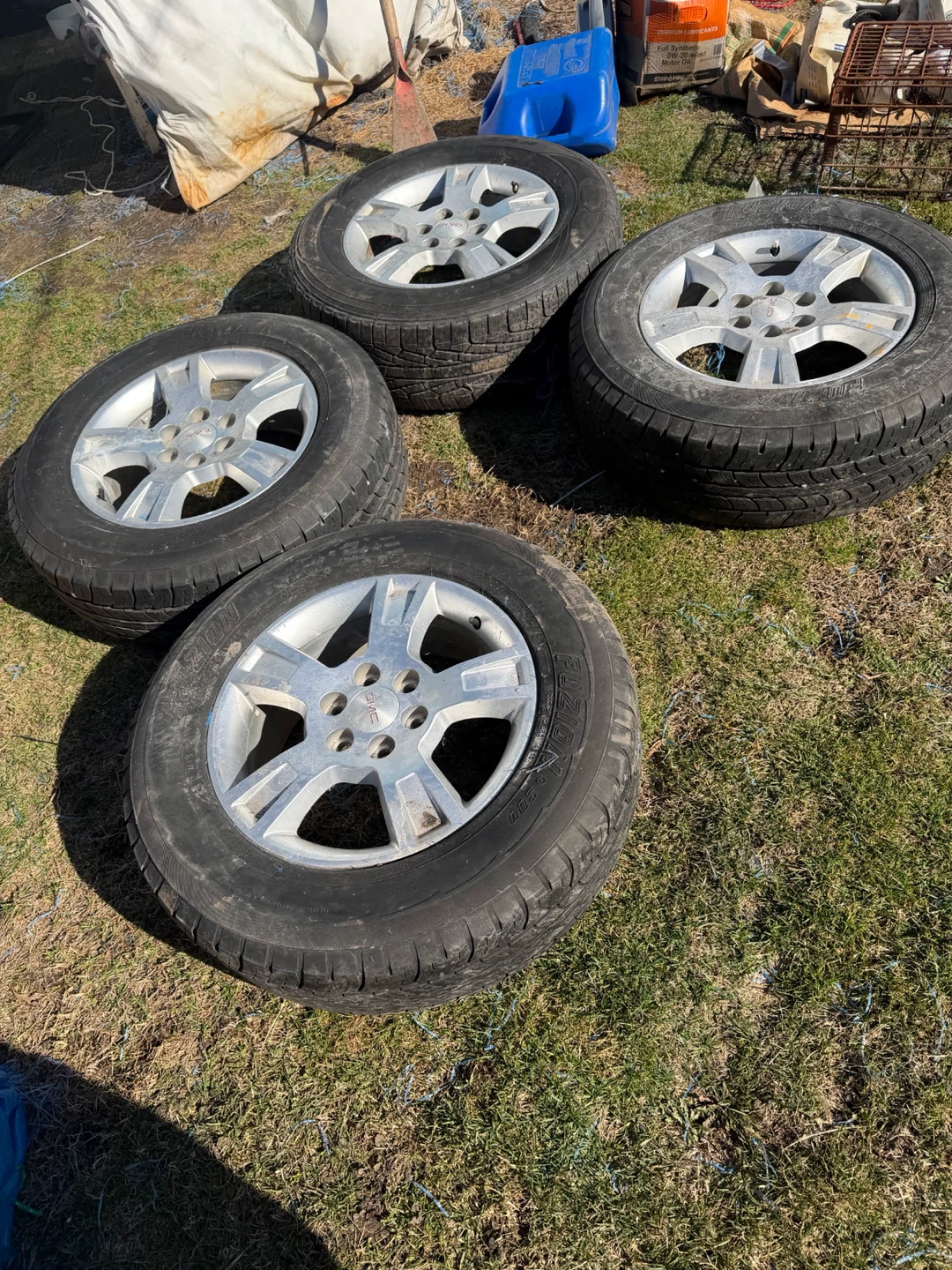 Set of four GMC alloy wheels with tires. Tire size is 255/65R18. These wheels come with a 6-lug bolt pattern. They're ready for your truck or SUV!