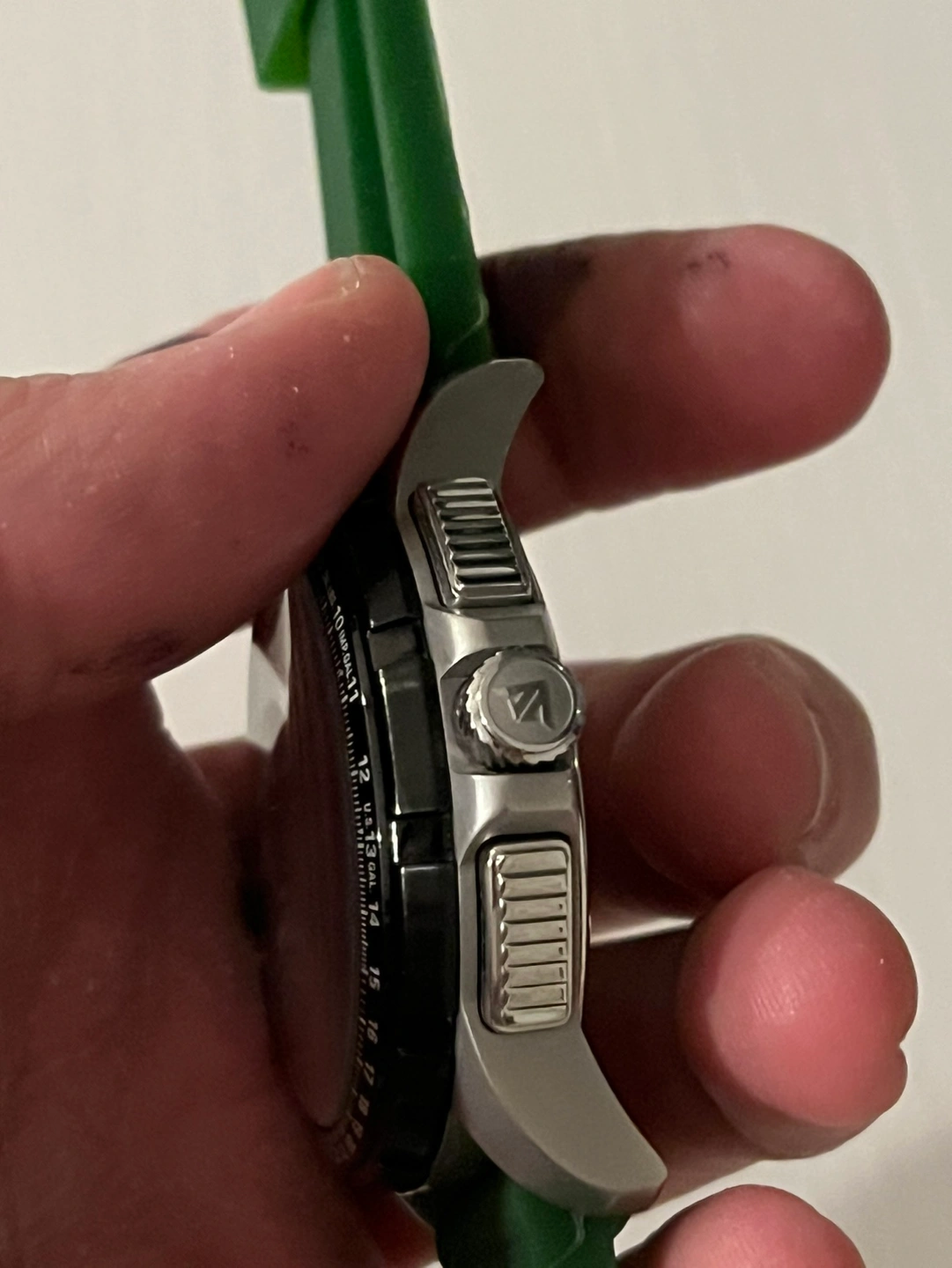 Works great, bezel does turn, world times, with light, calendar and dual alarms…. 200m water resistant