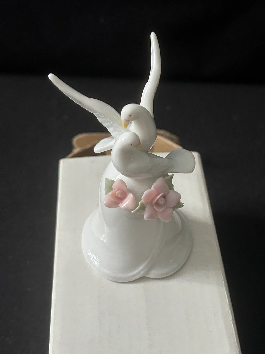 15Porcelain Bell Figurine, 2 White Turtle Dove Birds and 2 Pink Flowers 🌸 🌸 Brand New NWOT but in original box Approximately 3 1/2” Long x 2” Circumference Please be able to meet in Forest Hills, Queens, (occasionally in Manhattan) and take a look at my other postings too!