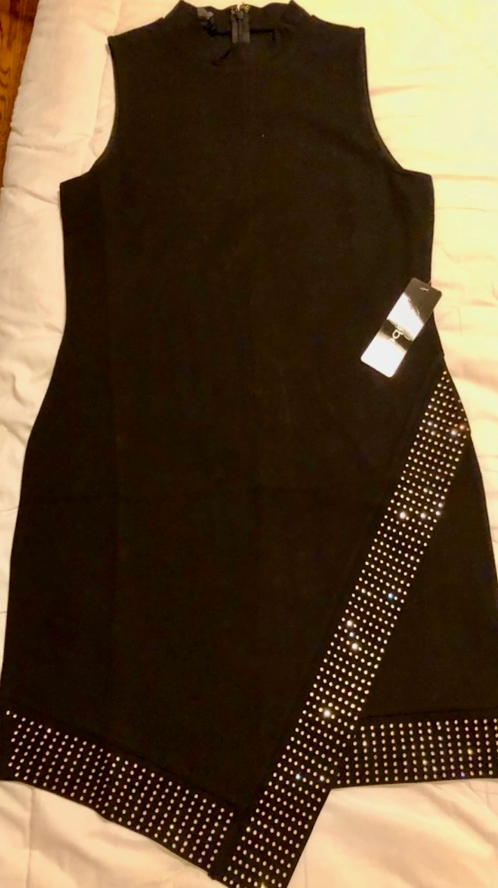 Bebe Asymmetric Embellished Mini Dress Very Sexy and Body Fluttering Rhinestones details, Strachey Size L fits also size M New with Tag Ready to ship/ pickup 😍