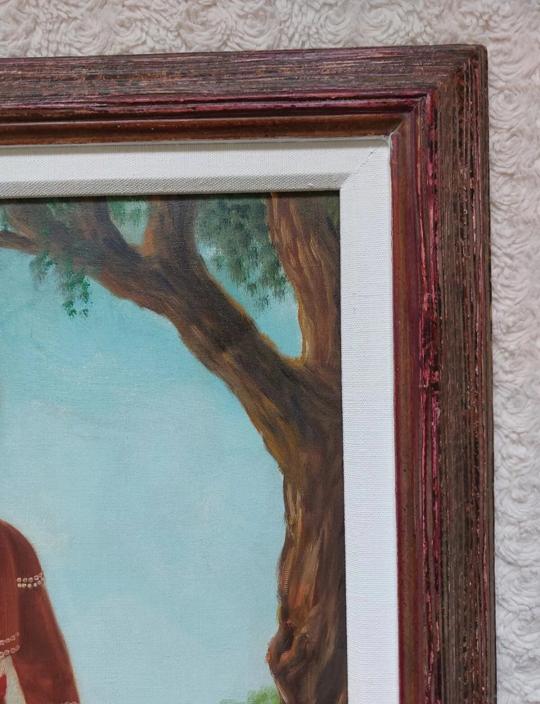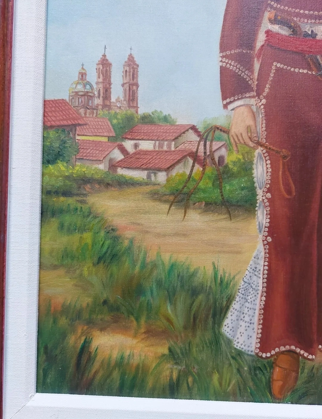 Mexican Folk Art Boy Oil On Canvas Vintage 20th Century Signed Tamariz. With a wooden frame