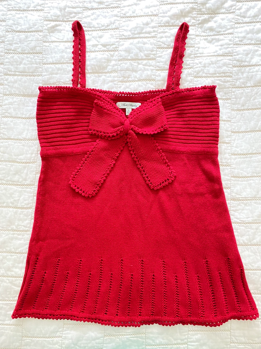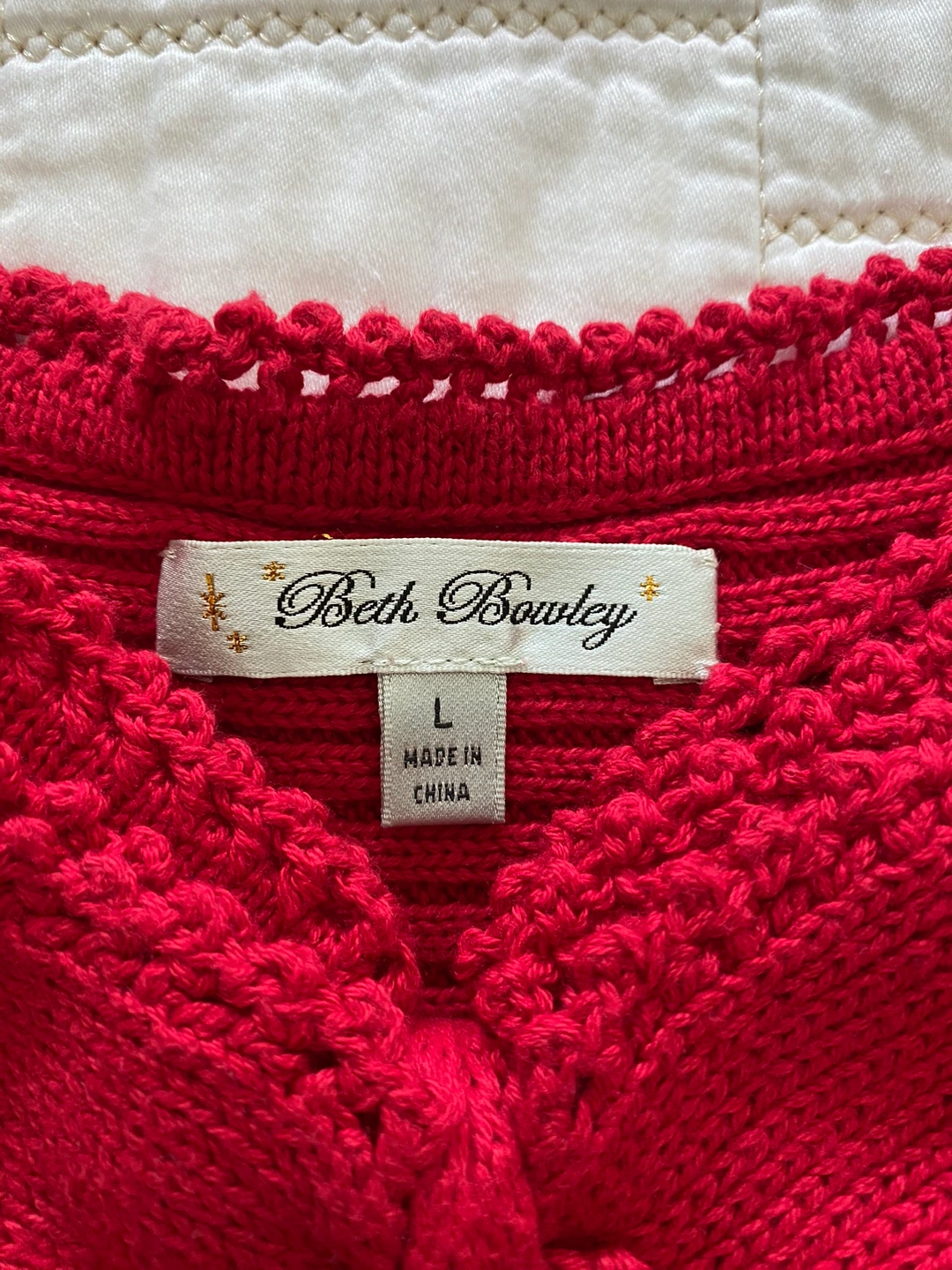 new women's knitted top size Large Red color brand Beth Bowley Cotton 100% Cash and pickup only
