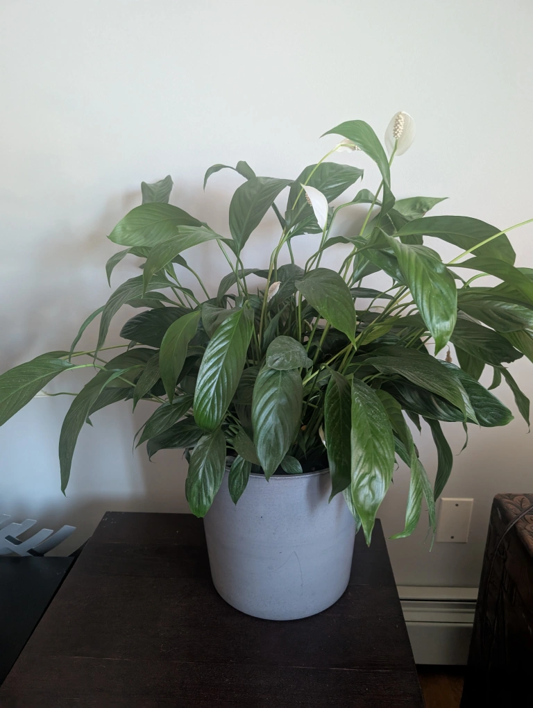 Pick up in Brooklyn Dyker Heights, 11228 $39 for both the peace lily and planter... Selling a large peace lily plant ( 28" H x 38" W) Gray heavy planter is 11" wide It would look great in your home or office! Easy care plant. Bright Spot, No Direct Sun! Prefers a bright room but keep it out of harsh, direct sunlight (it will burn the leaves). Tolerates low light, but won't flower as much. Water When Droopy! This plant tells you exactly when it's thirsty by dramatically wilting. Water thoroughly when the top inch of soil feels dry. Do not let it sit in standing water.