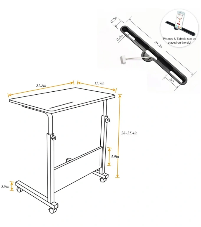 31.5 inches with Tablet Slot and Wheels Adjustable Movable Portable Laptop Computer Stand for Bed Sofa