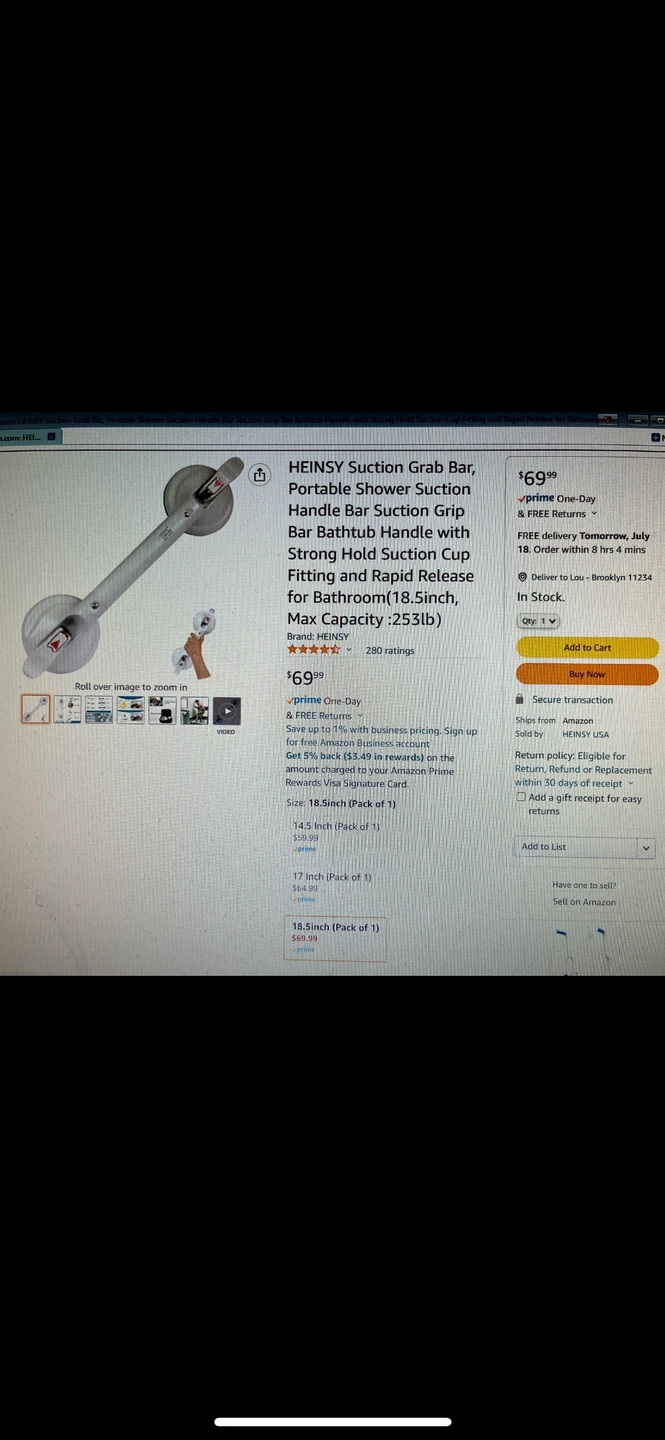 98New in Box HEINSY Bath & Shower Grab Bar (470mm/18.5inch)suction $69.99 on Amazon!!! See all pictures! Ave U and East 66th Street.