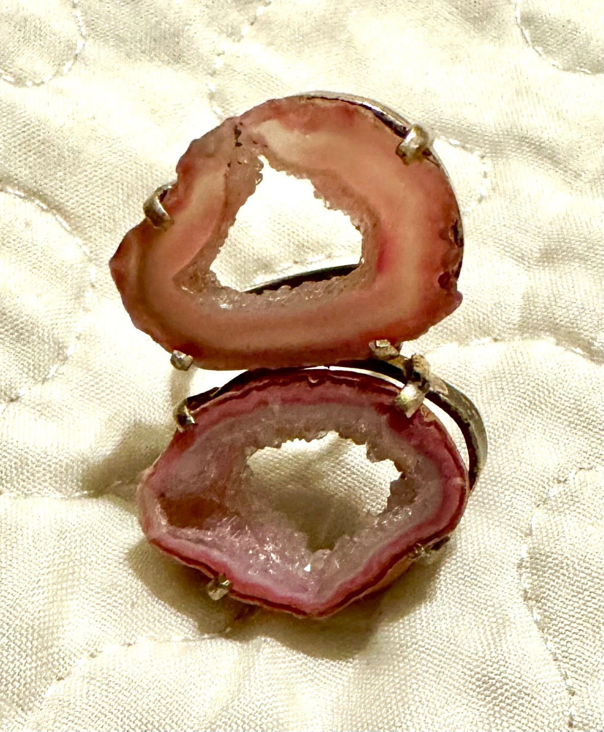 Pink Rose Quartz Druzy Agate Adjustable Ring Gold Plated Rare and Unique Shape New Never Used Great Gift ๐ For The Holiday