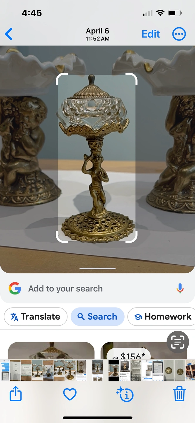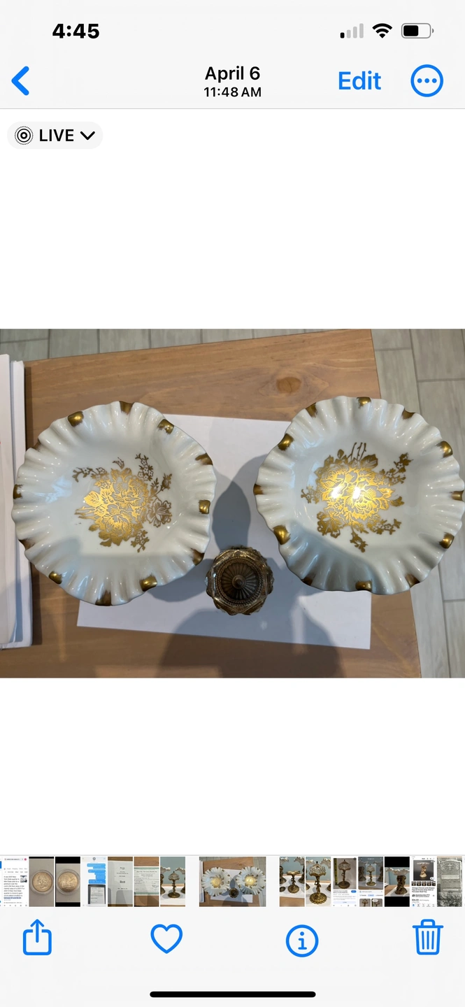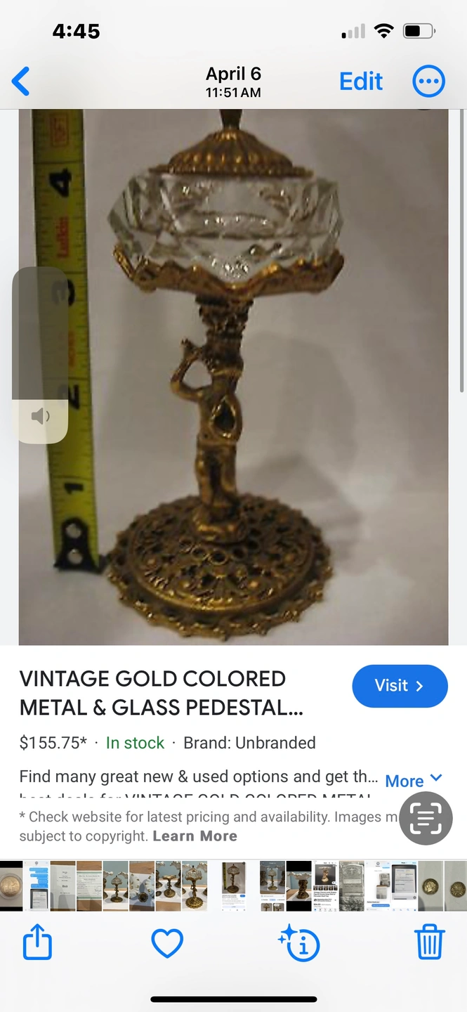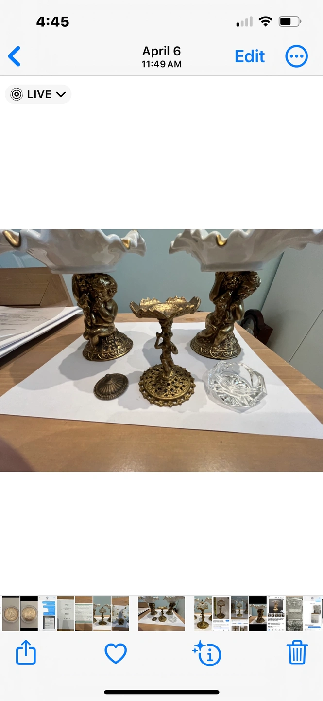98Set of 2 vintage soap dishes with porcelain trays. Each tray has a cherub figurine holding a lamb and grapes. Each base is ornately decorated. 5.25”H x 5.5” W The Rare miniature Pedestal has a clear crystal topped piece with an ornately decorated metal base. 4.75” H -Soap Dishes sell for $34.03 each + S/H - Rare vintage Pedestal sells for $155.75 + S/H Ave U and East 66th Street, Brooklyn Local pickup Only