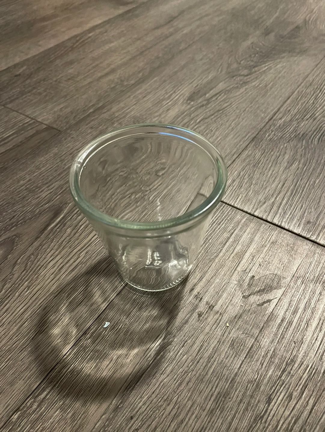 A glass cup. I can offer as free item if you buy something. #freecycle This is so good for carrying sauce, not just only for drink something. Cause it is sturdy. I want to share it if somebody wants to take it.