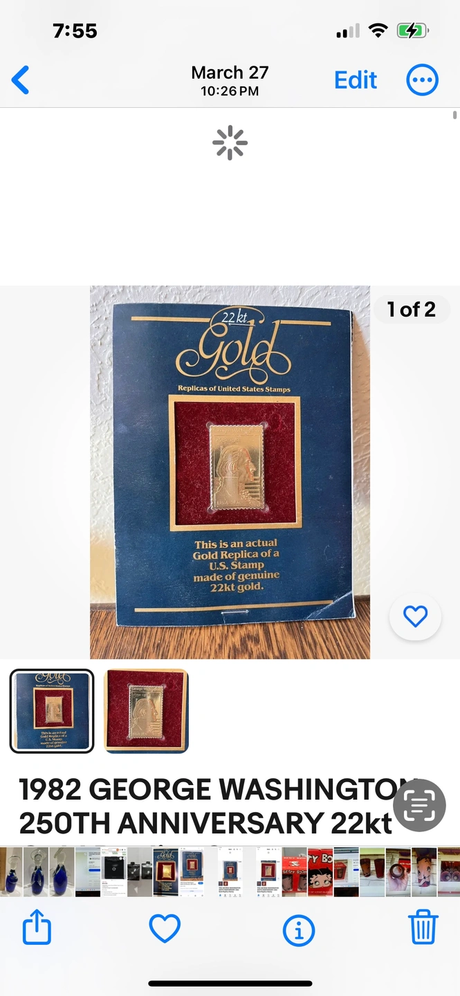 98Collectible: A Gold Replica of the 1982 George Washington 250th Anniversary stamp. In Mill Basin Brooklyn Local Pickup Only