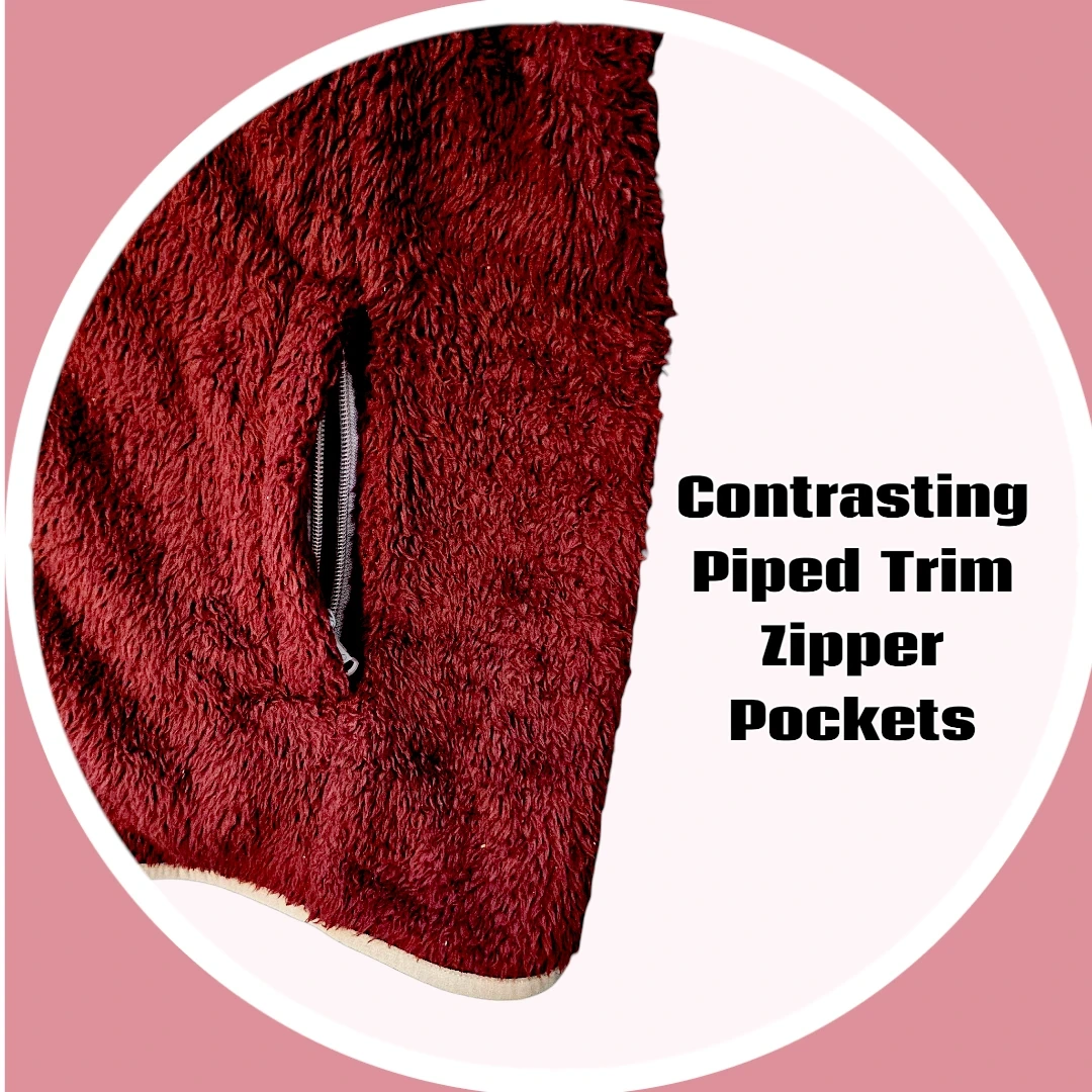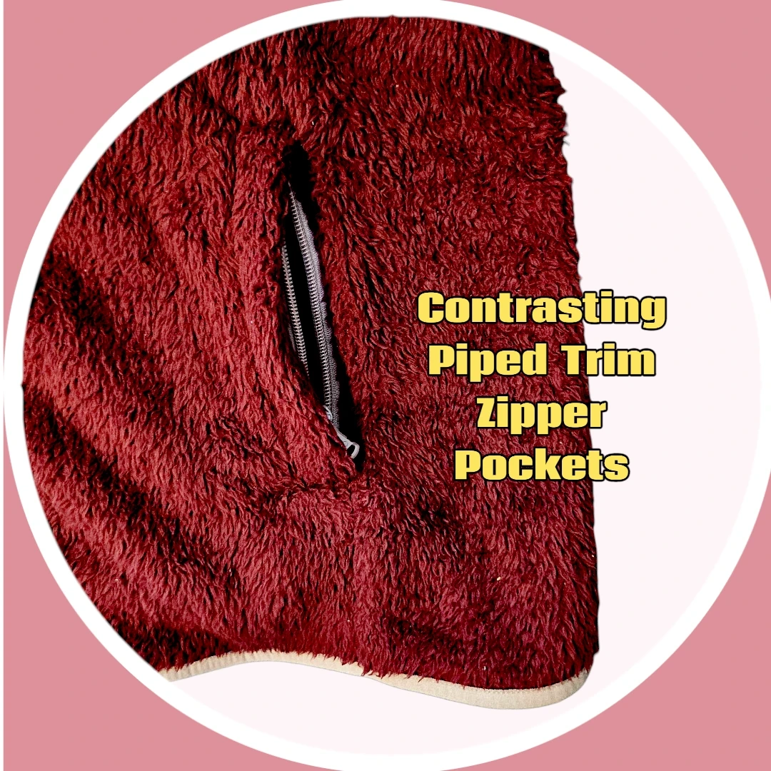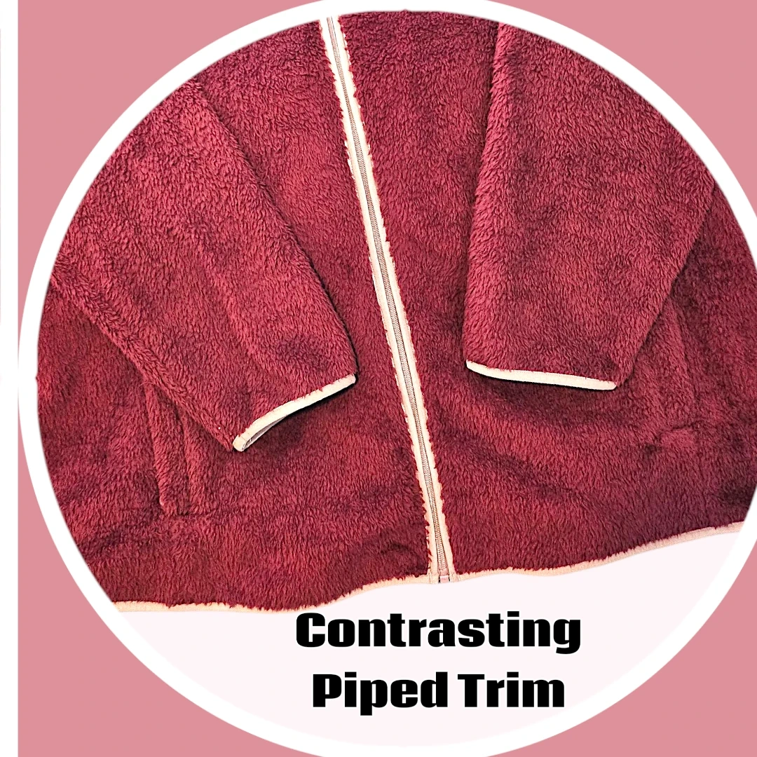Mauve Trim Along Sides of Zipper