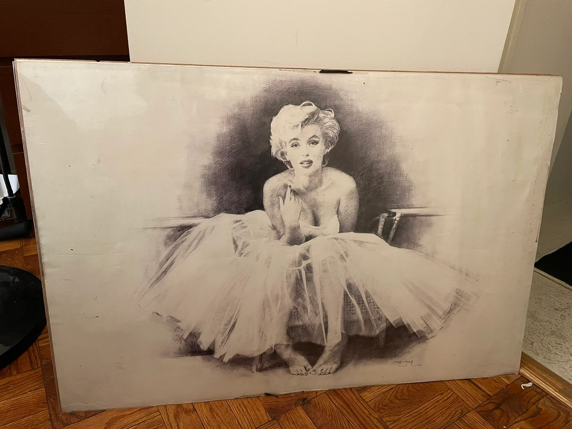 Black & White print of Marilyn Monroe in a tutu. Does not come with frame/plastic. This is a poster needs to be placed in a frame.