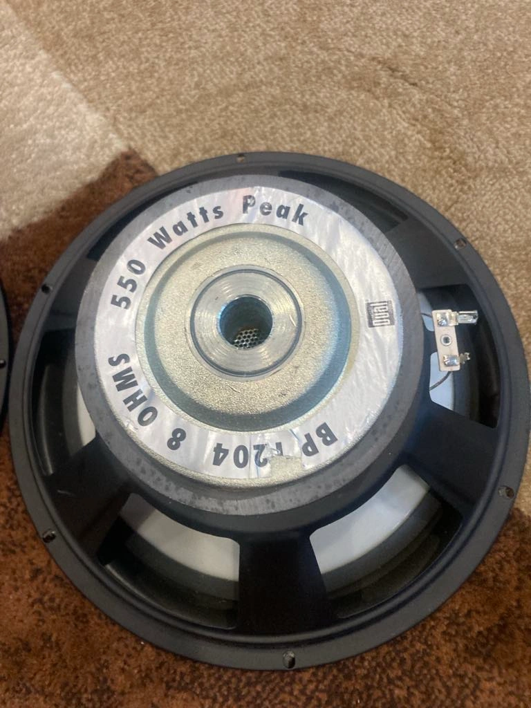 Two 12 inch subwoofers. 8 Ohms, 550 Watts Peak.