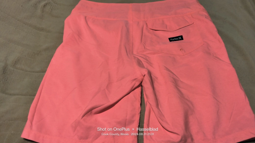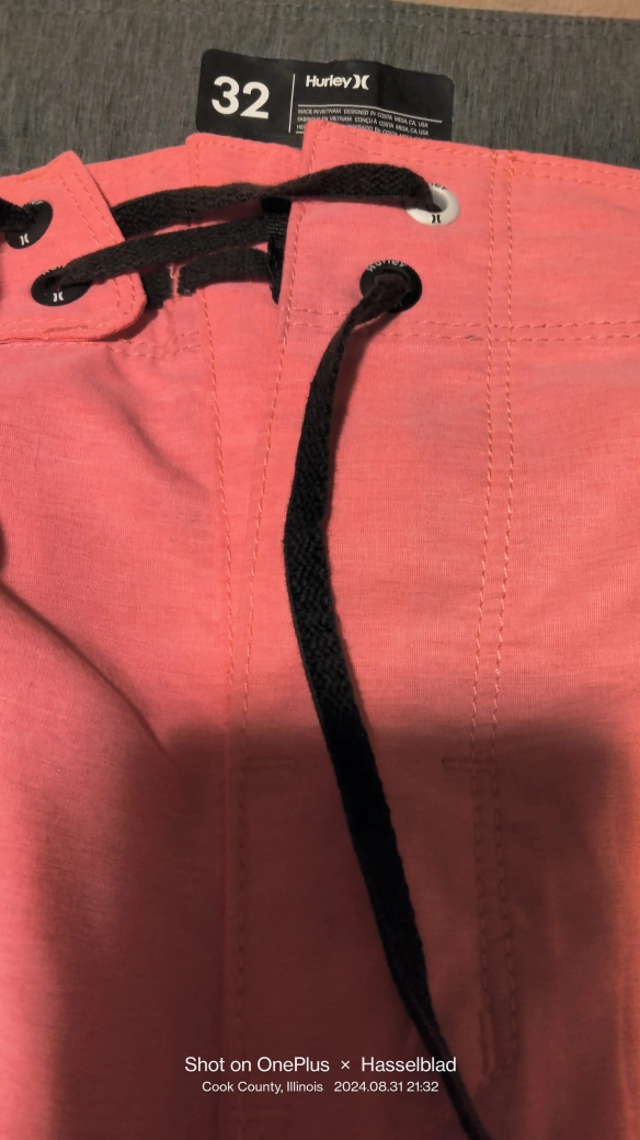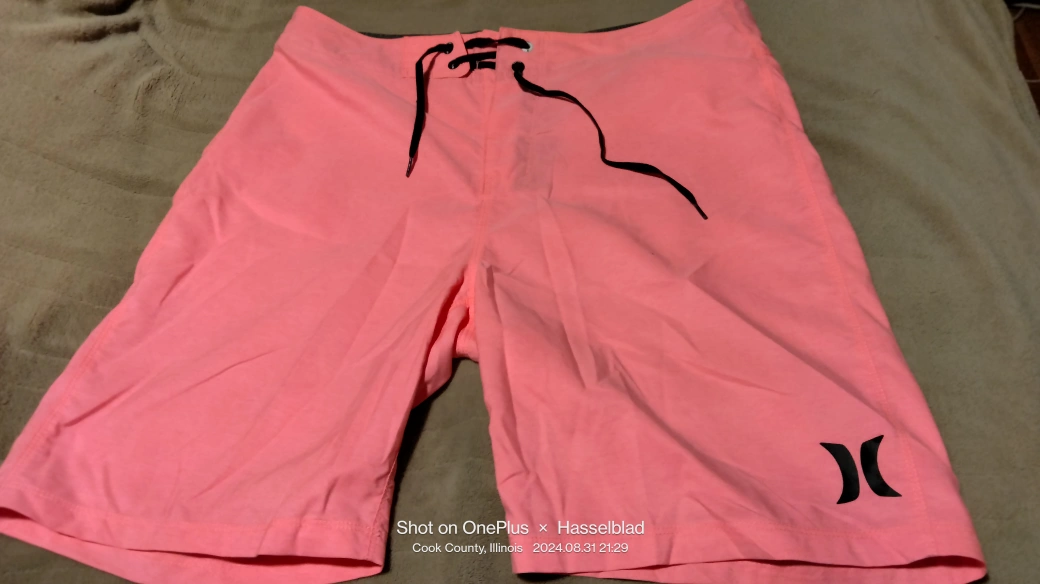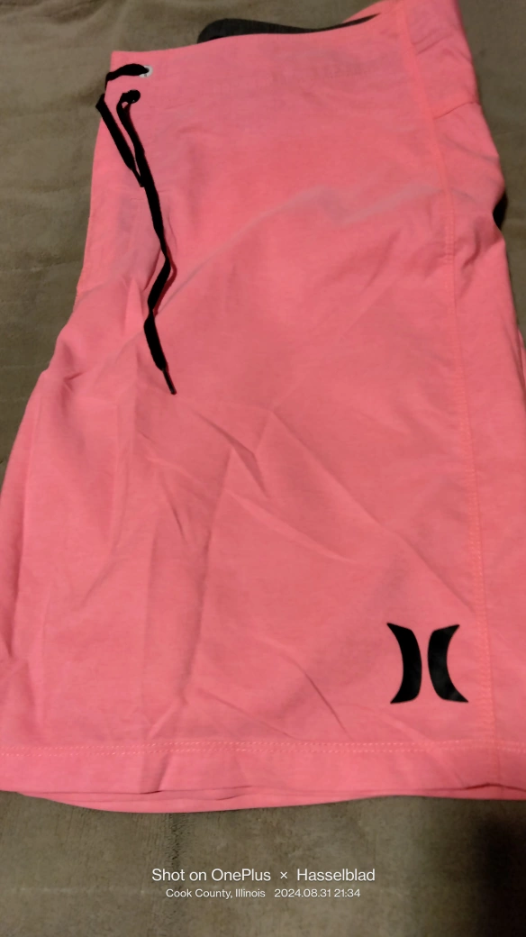 These are mens Hurley swim trunks in pink with a black Hurley logo. They are size 32 never been worn but no tags