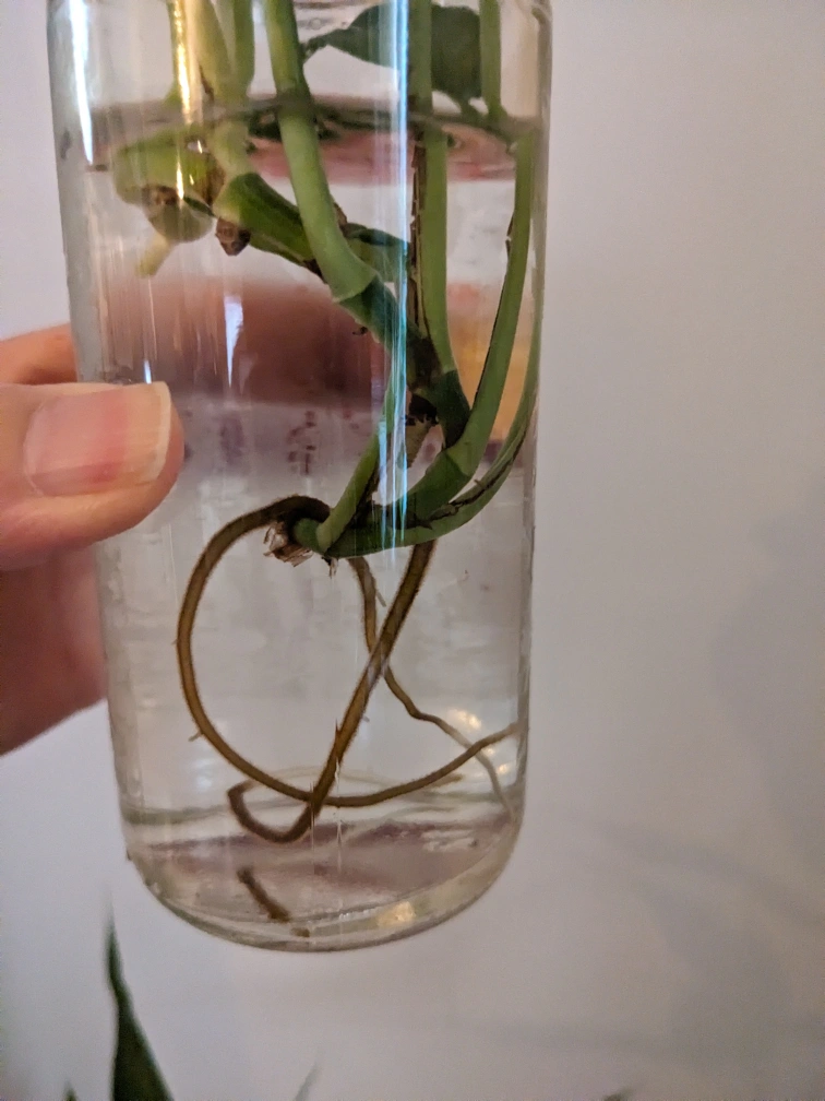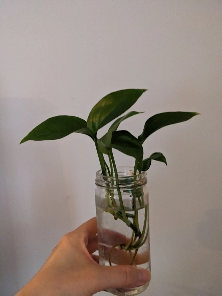 893This is a Philodendron cutting that has been water propagated. It has well-developed roots and is ready to be planted. The cutting is in a small jar, but will need to be repotted in a pot🧡 Pickup only Thanks
