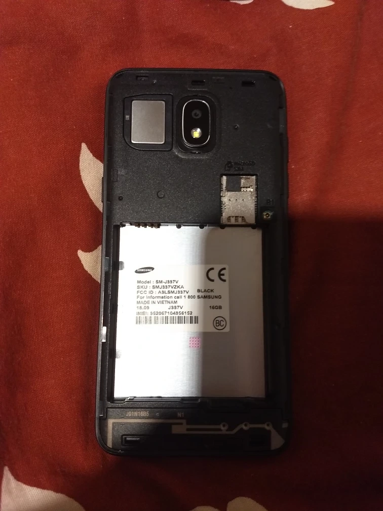 Samsung Galaxy J3 V - This phone is in good cosmetic condition with the back cover having a couple of marks and scratches and the sides having markings from a case, aswell as the screen being in perfect condition with little to no scratches. All functions have been tested and do work. This phone is carrier unlocked, meaning that any SIM card inserted in this phone should work, but it is also MDM locked, although the lock should be easy to bypass. This phone is reset and ready to go, but if you want, I could set it up for you. IMEI is shown on the 8th photo.