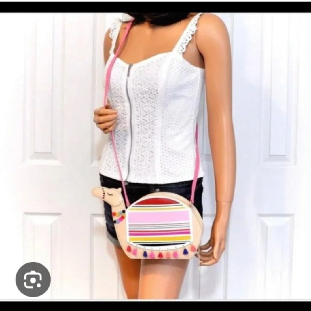 484A fun and colourful crossbody bag with a camel design. It has a long adjustable strap.