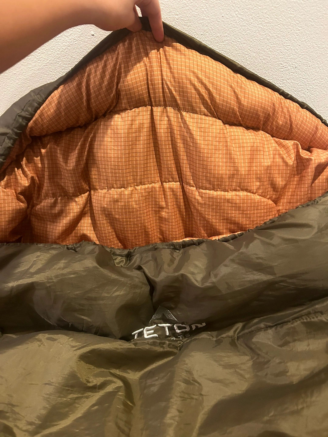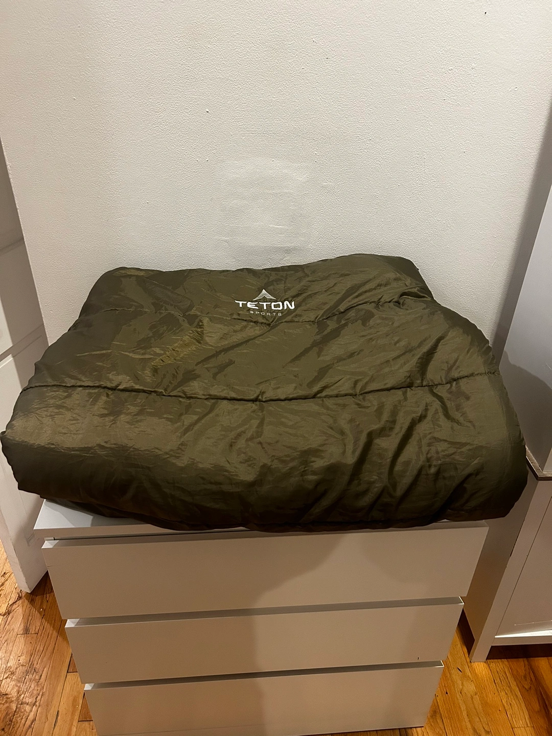 Super cozy TETON XL sleeping bag, right zipper edition. Only used once (indoors at that, we ran out of beds when hosting guests) and has been cleaned. Can be used in as cold as 0° Celsius weather. Goes for $90 on Amazon. *Does not come with bag holder but I can give you a bag to take it in*