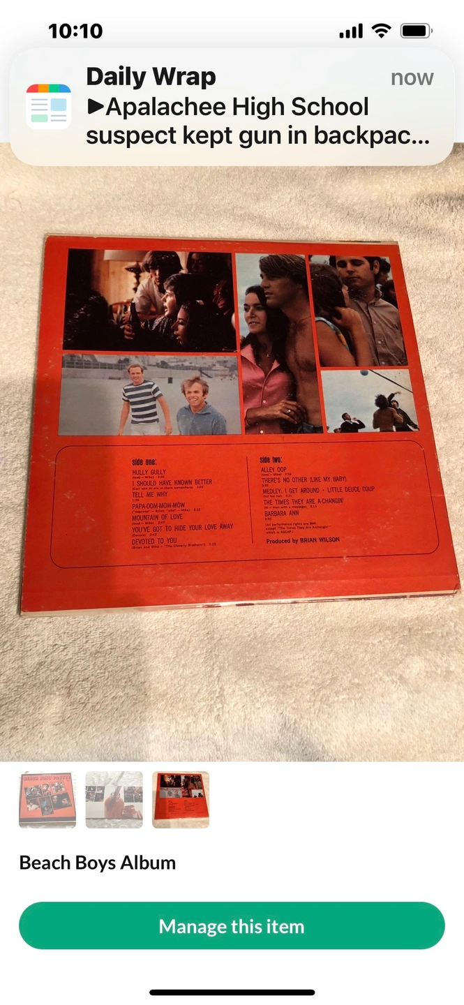 98Collectible Vinyl record of the album "Live at a Beach Party" by the Beach Boys.