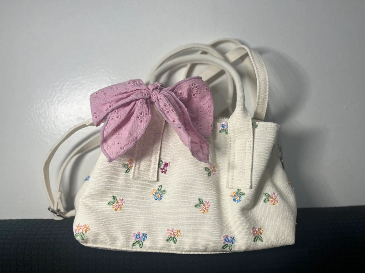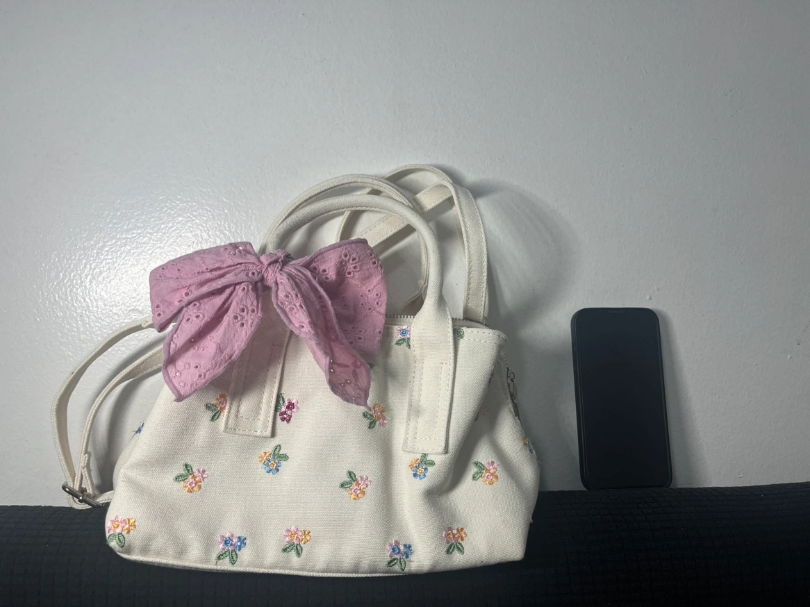 670Small white bag with a pink bow.