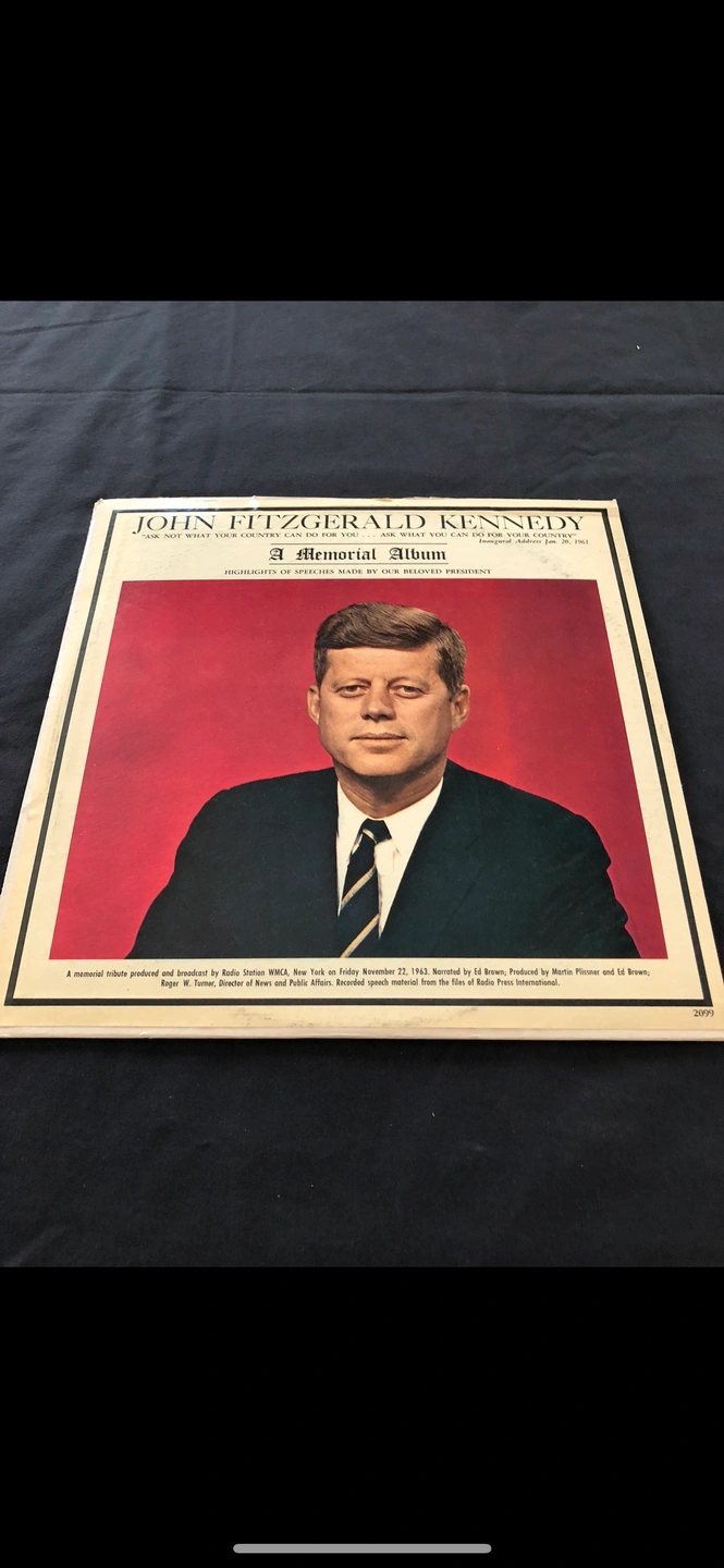98A memorial tribute album produced and broadcast by Radio Station WMCA, New York on Friday November 22, 1963. Highlights of his Speeches. Vinyl LP Record Album.